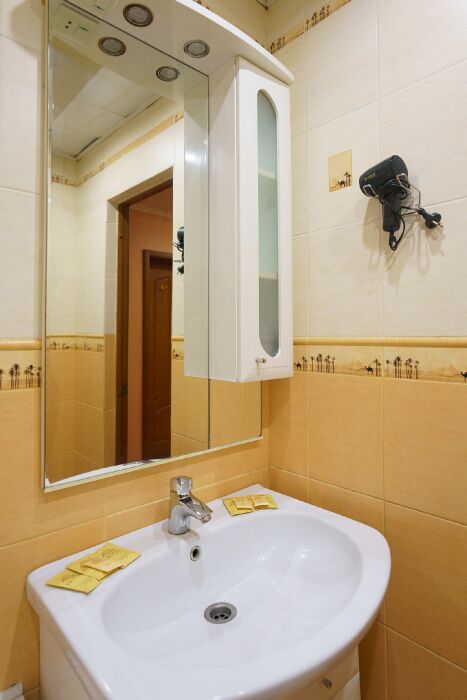 В ванной комнате одноразовые средства личной гигиены: мыло, гель, шампунь, зубной набор. Большие и маленькие полотенца на каждого гостя.