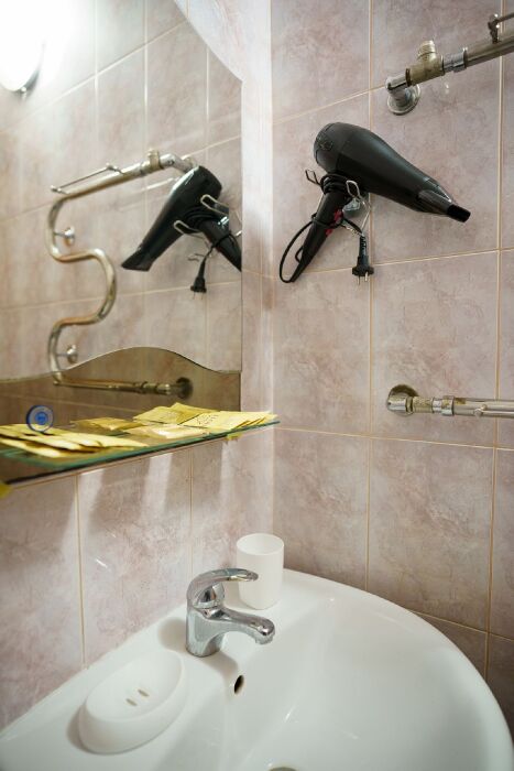 В ванной комнате одноразовые средства личной гигиены: мыло, гель, шампунь, зубной набор. Большие и маленькие полотенца на каждого гостя.