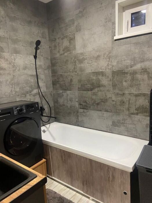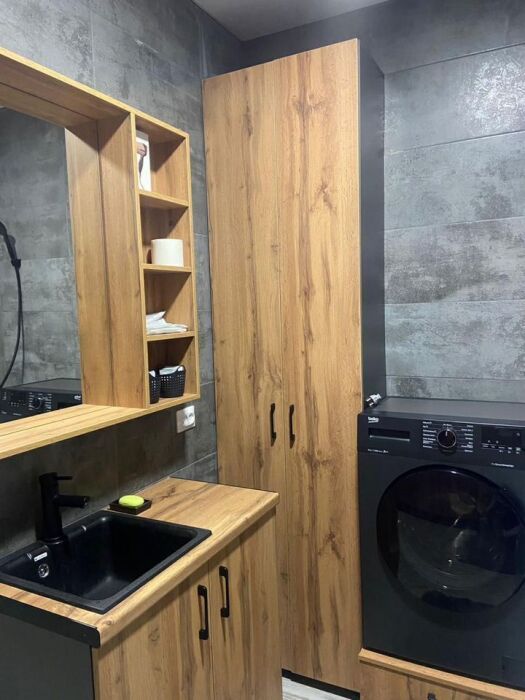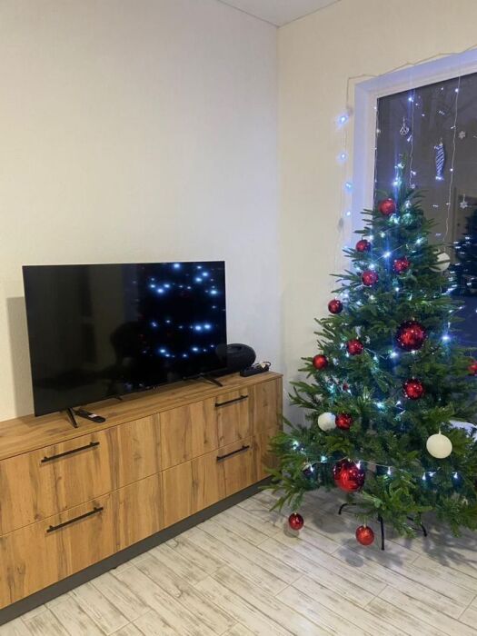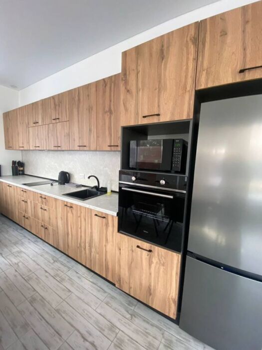 - весь набор бытовой техники: ТV (кабельное), посудомойка, холодильник, духовка, микроволновка, утюг с доской, сушка для белья, стиральная машина, кухонная вытяжка, электро плита, чайник , фен.