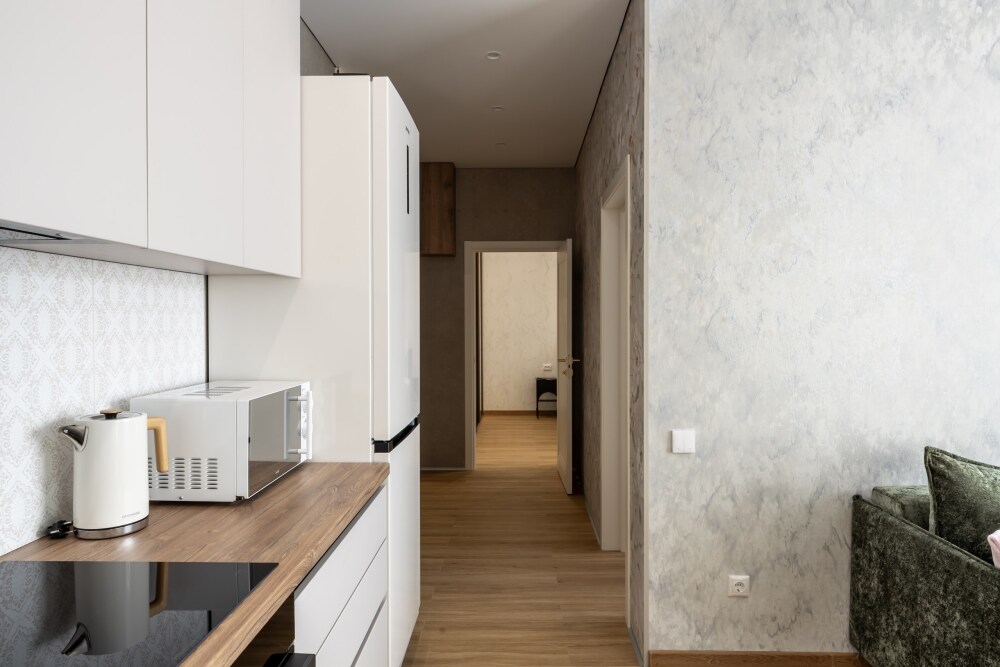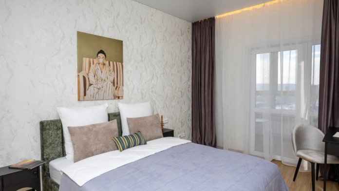 Просторная двухкомнатная квартира в премиальном жилом комплексе «Skyline». Квартира расположена на 7-м этаже, в доме есть лифт. Отсюда открывается замечательный вид на город, а тёплая лоджия с подвесной качелью позволяет наслаждаться им круглый год. В ванной комнате установлен тропический душ. В каждой комнате предусмотрена подсветка - выключив основной свет, можно создать особую атмосферу. Каждая комната изолирована дверью. Квартира рассчитана на проживание до 6 человек .