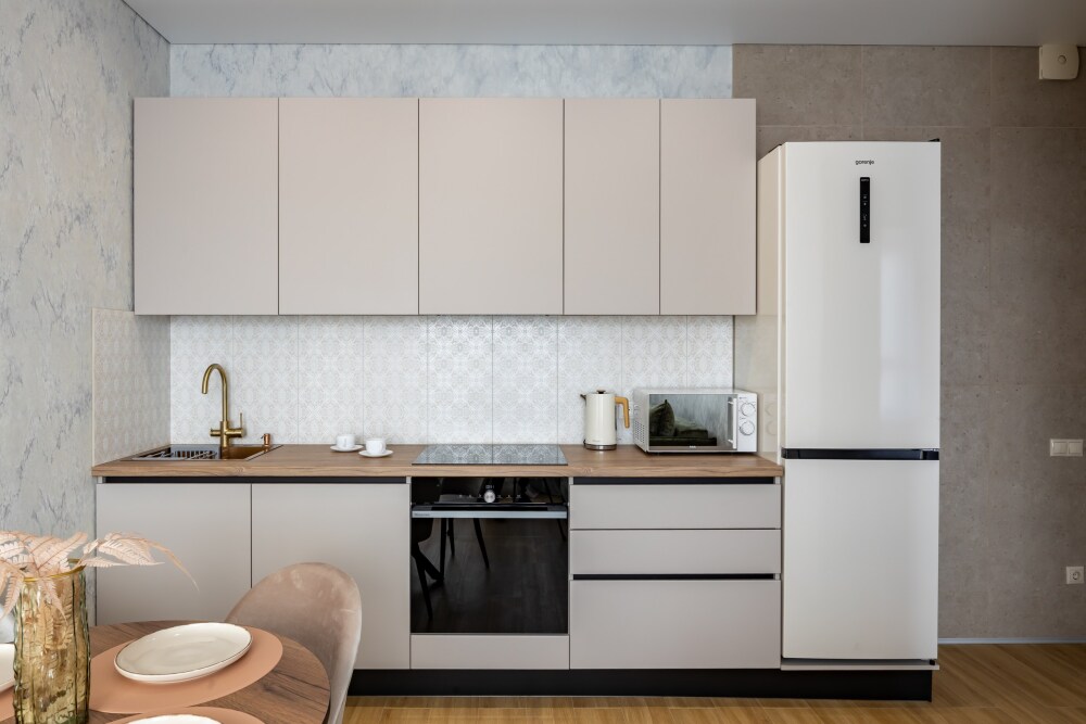 Полностью оборудованные кухни с посудой и столовыми приборами.
