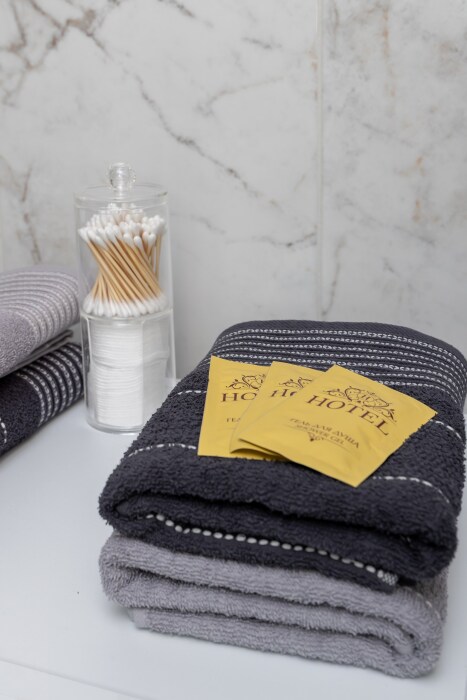 Просторные ванные комнаты с феном, свежими полотенцами и косметическими принадлежностями.