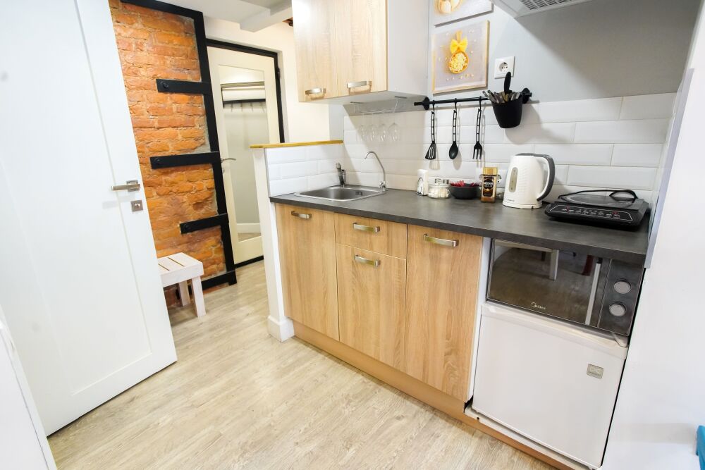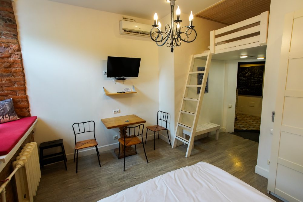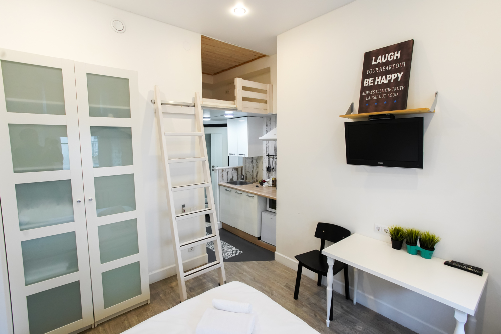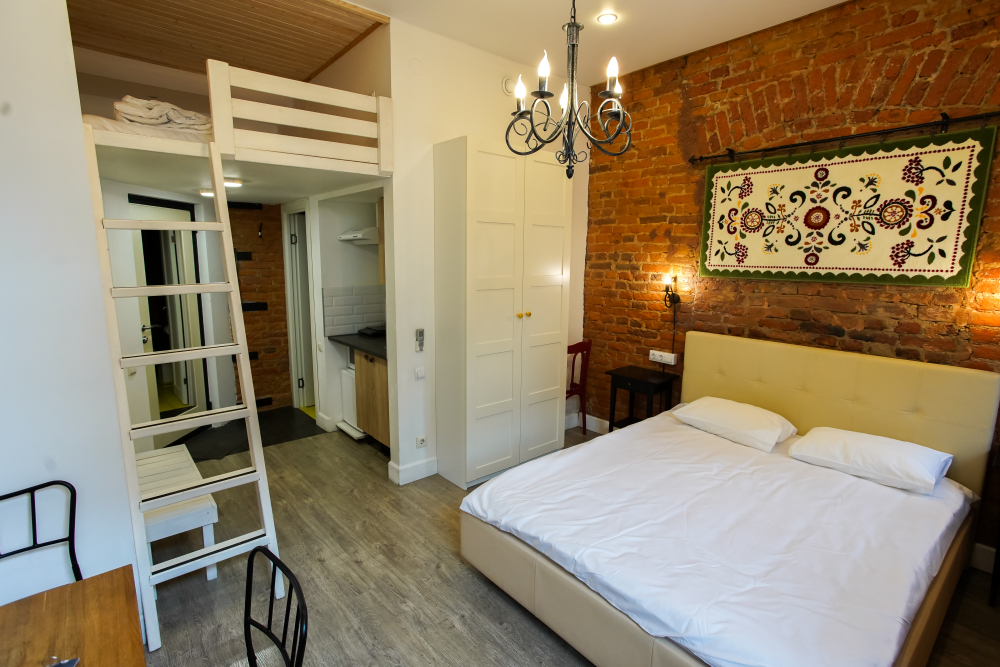 Уютная студия длв 2 гостей с уникальным дизайном. Наполнение для комфортабельного проживания гостей.