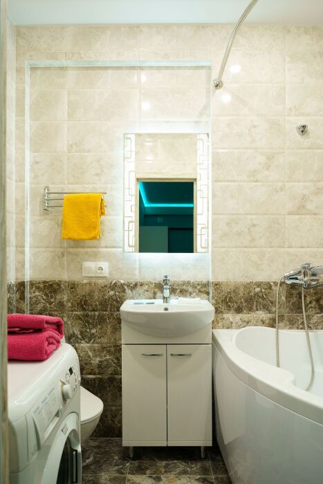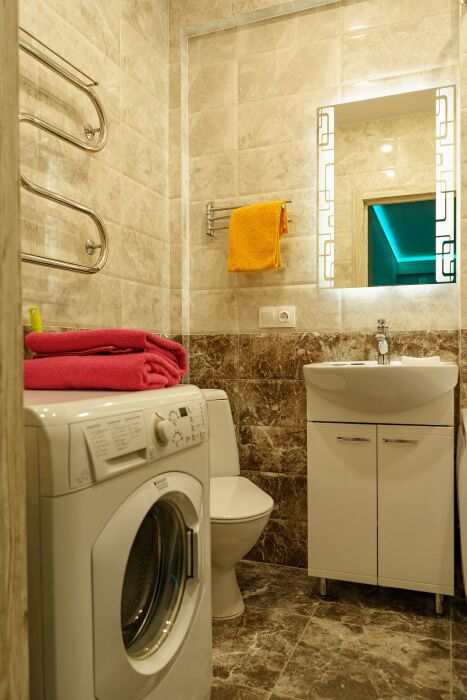 Фен, утюг, гладильная доска, сушилка для белья, стиральная машина. Цифровое ТВ, интернет (Wi-Fi).