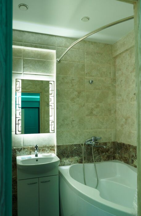 В ванной комнате одноразовые средства личной гигиены: мыло, гель, шампунь, зубной набор. Большие и маленькие полотенца на каждого гостя.