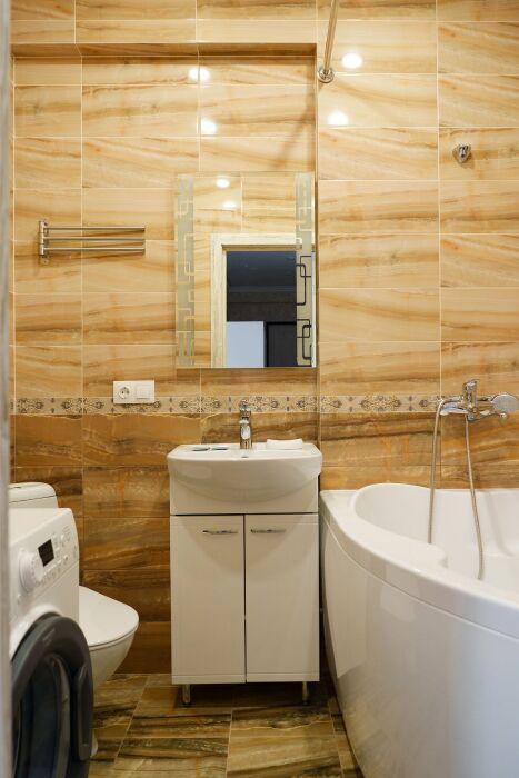 Фен, утюг, гладильная доска, сушилка для белья, стиральная машина. Цифровое ТВ, интернет (Wi-Fi).