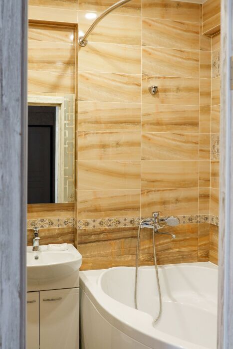 В ванной комнате одноразовые средства личной гигиены: мыло, гель, шампунь, зубной набор. Большие и маленькие полотенца на каждого гостя.