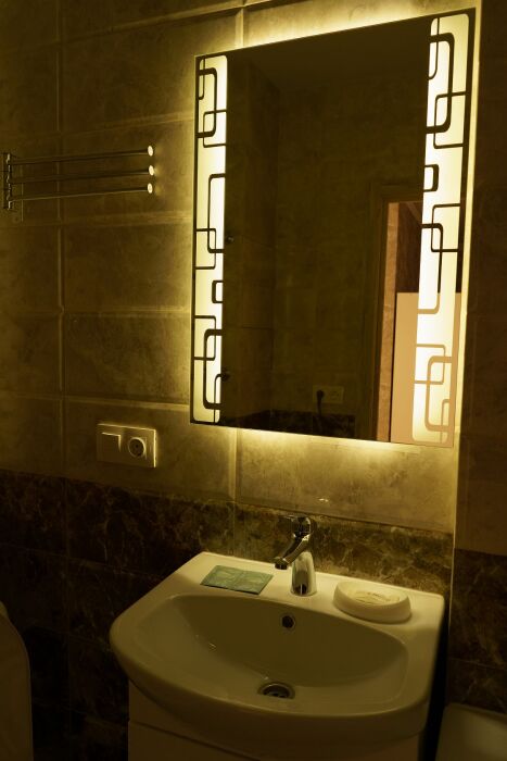В ванной комнате одноразовые средства личной гигиены: мыло, гель, шампунь, зубной набор. Большие и маленькие полотенца на каждого гостя.