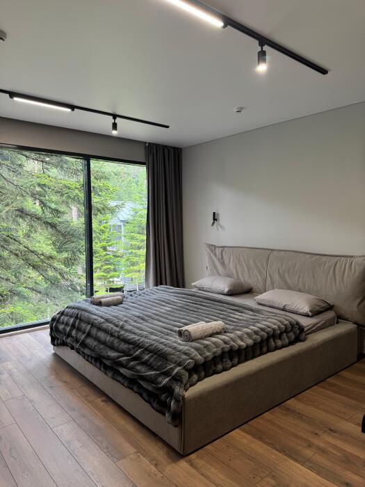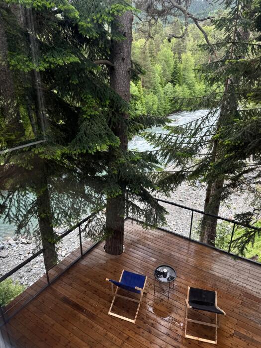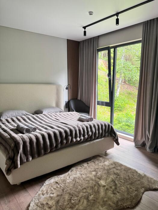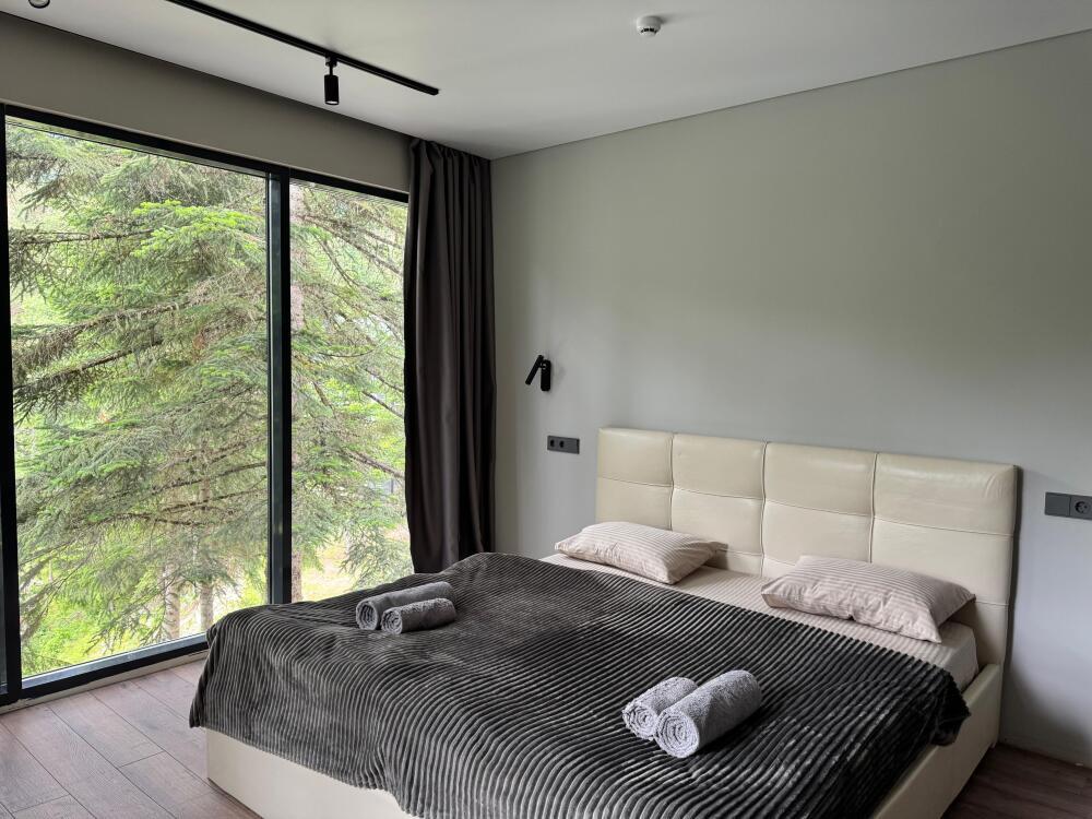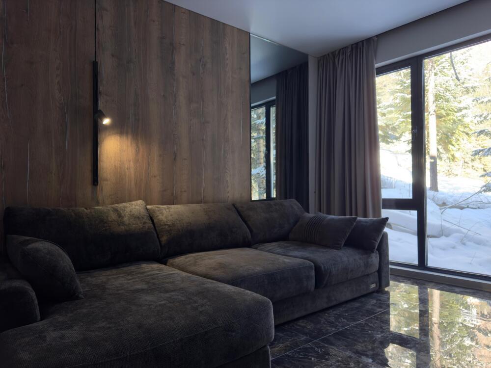 Клубный дом премиум класса идеально подходит для любителей сбежать от городской суеты, уединившись с природой. Мы находимся в гуще Архызского леса. Из панорамных окон открывается завораживающий пейзаж на горы и реку София.