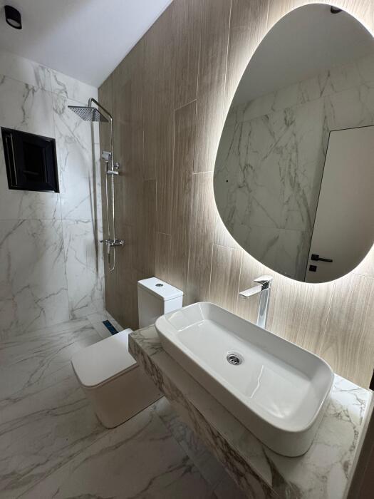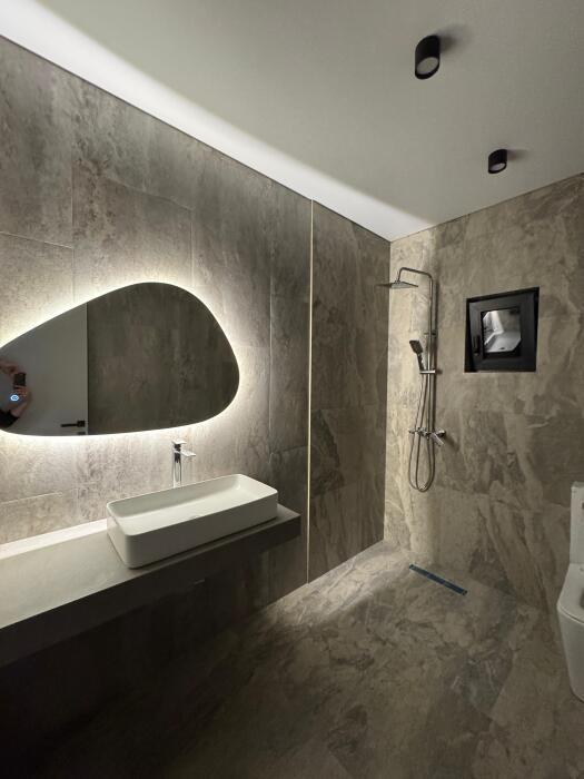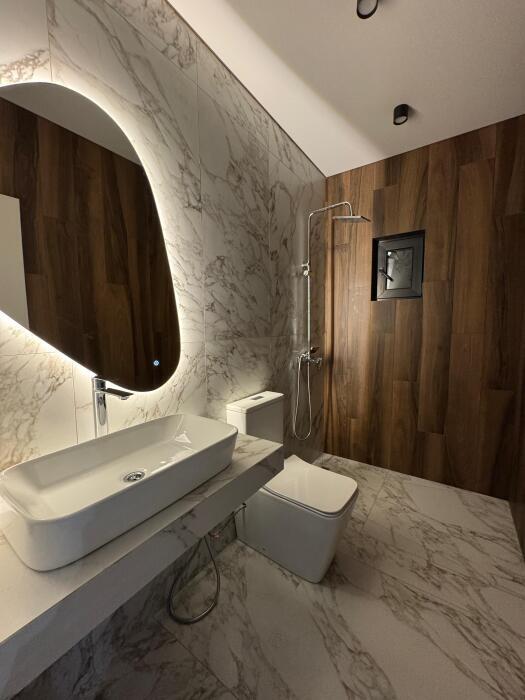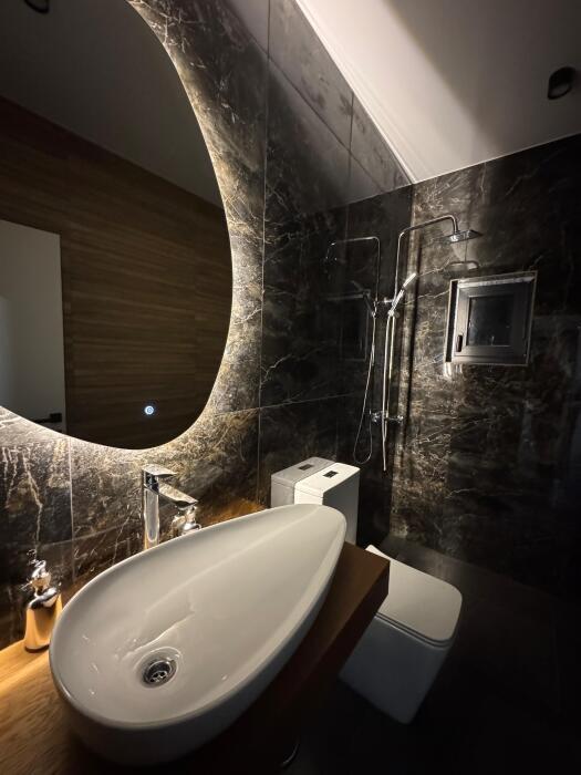 Дом оснащен 5 спальнями, для каждой прилагается просторный с/у с душевой.