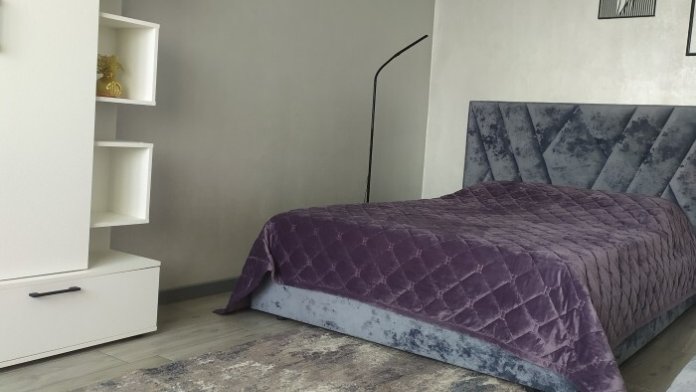 Удобная двуспальная кровать, тёплые полы согреют вас в холодную погоду.