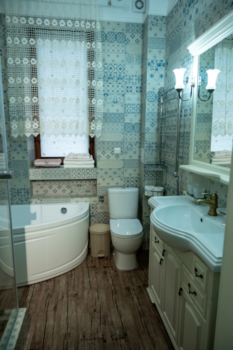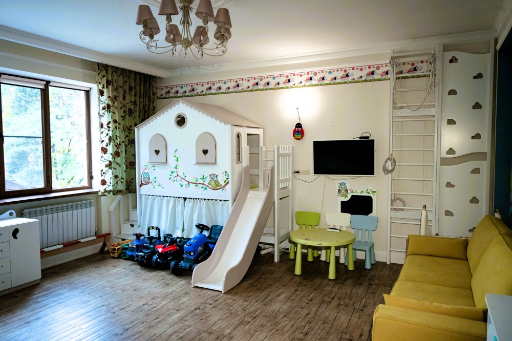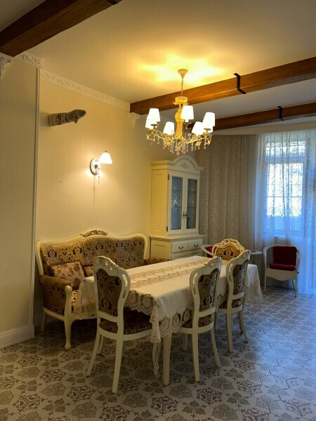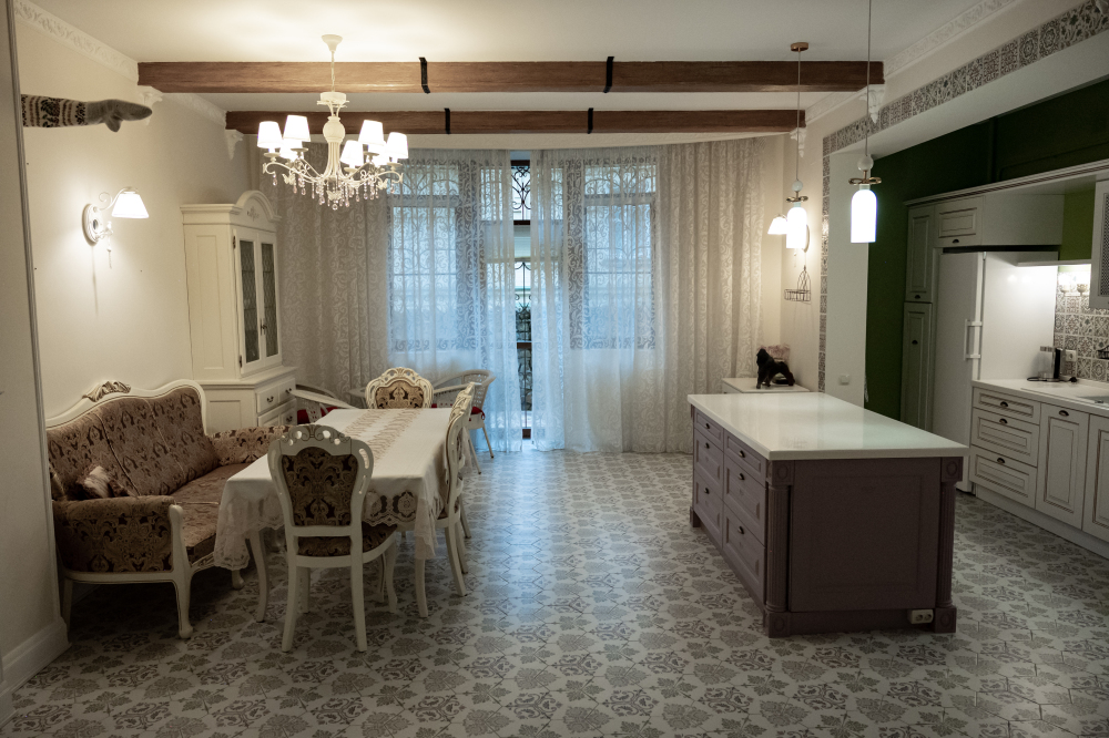 В квартире четыре отдельные комнаты, большая кухня-столовая, два санузла, прачечная и гардеробная. Индивидуальное отопление и полы с подогревом. Для семей с детьми предусмотрены детская комната, кроватка, коляска (можно выбрать прогулочную или для грудничков) и стульчик для кормления. Кухня полностью оборудована всем необходимым для комфортного отдыха.