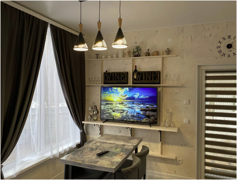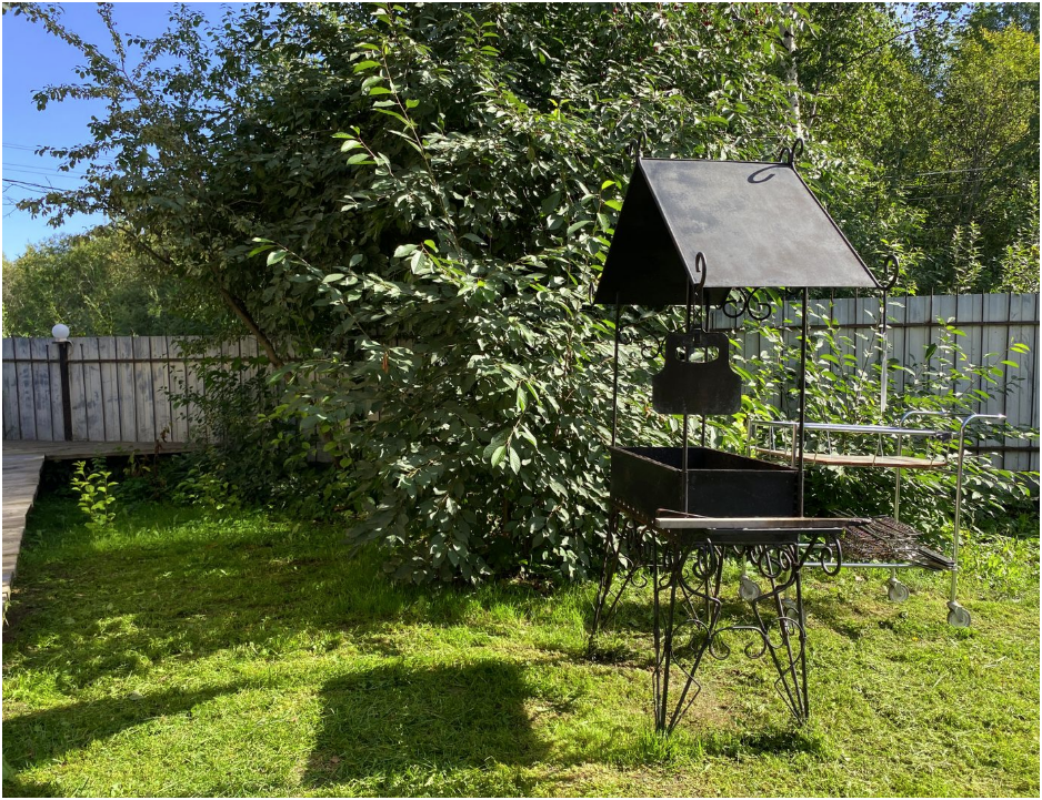 Дом имеет мангальную зону со всеми принадлежностями для шашлыков и барбекю.