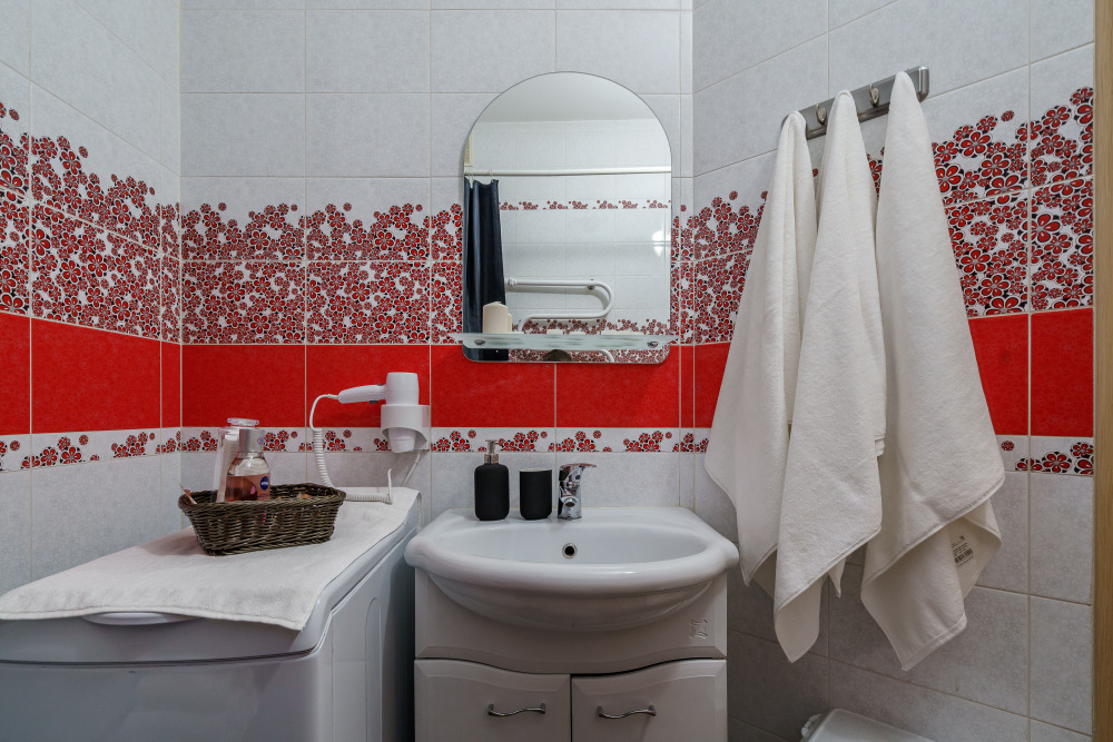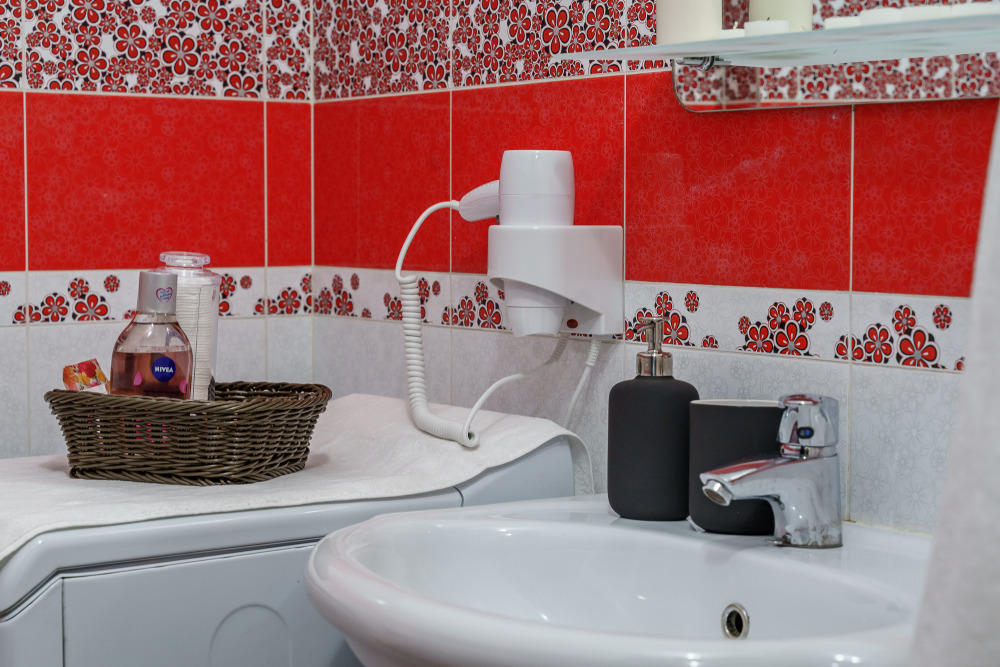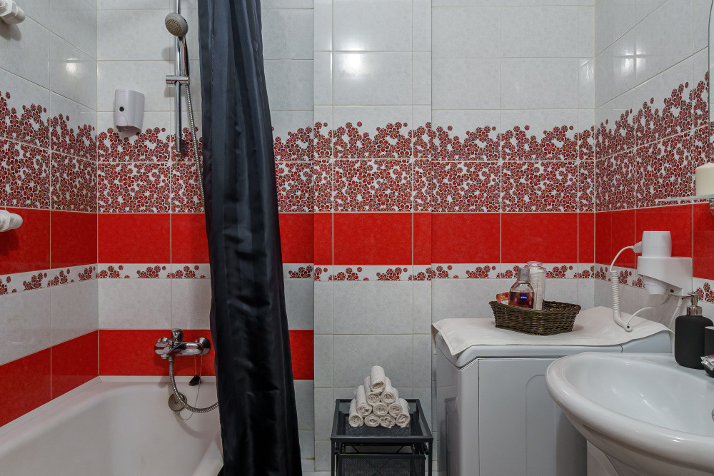 - утюг, гладильная доска, сушилка, ванная комната с ванной, стиральная машина;