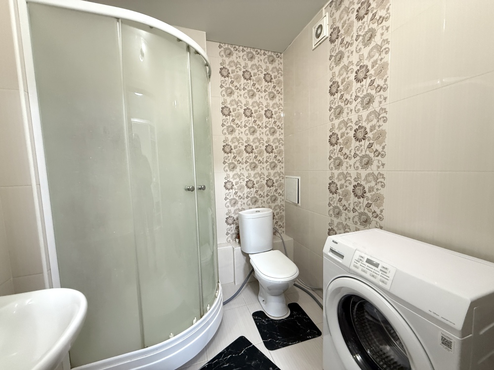 - современная бытовая техника: электрическая плита, двухкамерный холодильник, электрочайник, свч, фен, утюг, стиральная машина.