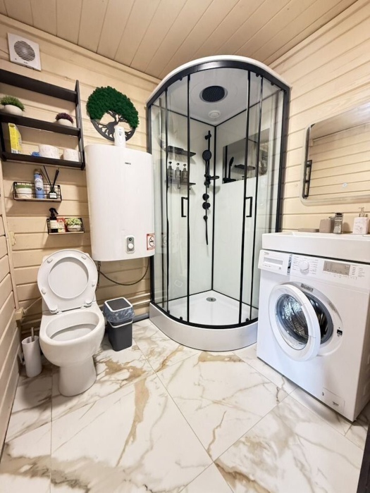 Также в доме система отопления, позволяющая Вам самим регулировать комфортную температуру в каждой комнате. В гостиной и ванной комнате тёплый пол. Wi-Fi