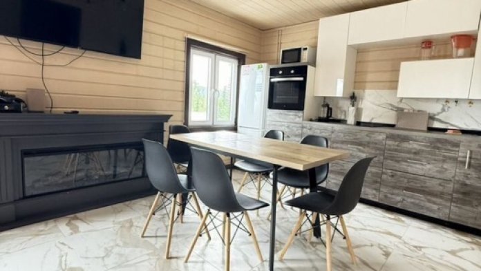 - современная техника: духовой шкаф, индукционная плита, холодильник, микроволновая печь, чайник, фен, электрокамин (много режимов и цветов), ТВ более 200 каналов, утюг, гладильная доска. Шкаф. Колонка Алиса.