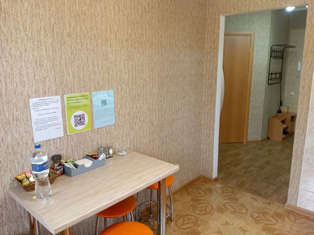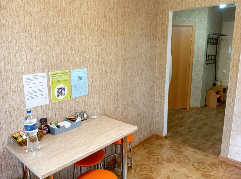 Дорогие гости, в квартире вас ожидает набор продуктов первой необходимости – сладости, пакетированный чай, кофе, сахар, соль, перец в одноразовых стиках. С заботой о наших гостях, 1,5 литра питьевой не газированной воды в подарок.