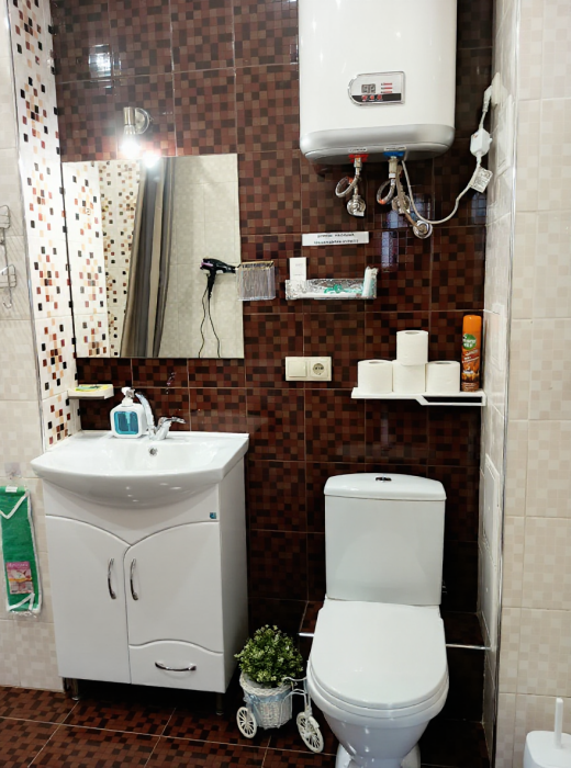 -️ ванная/туалет совмещены. Есть фен, средства индивидуальной личной гигиены (гель для душа, шампунь), бритвенный станок, зубные наборы - в в индивидуальных упаковках, по принципам отельного проживания;