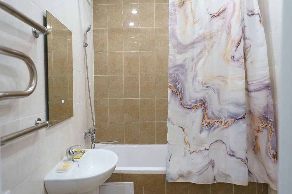 В ванной комнате одноразовые средства личной гигиены: мыло, гель, шампунь, зубной набор. Большие и маленькие полотенца на каждого гостя.