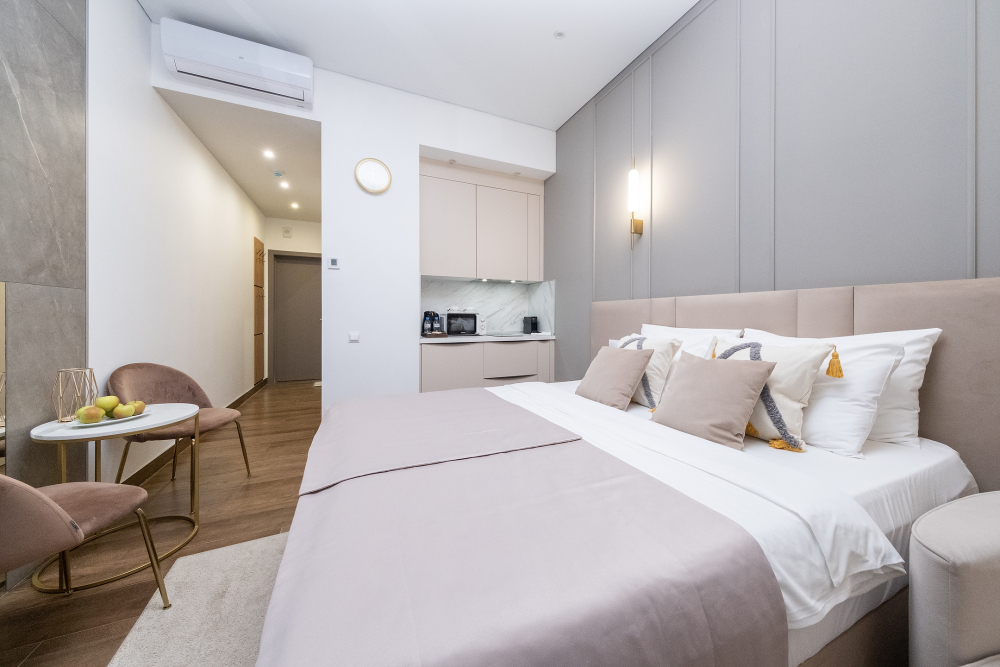 Идеально для пары или небольшой семьи: Студия с продуманной планировкой предлагает удобное размещение для троих гостей.