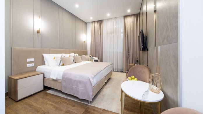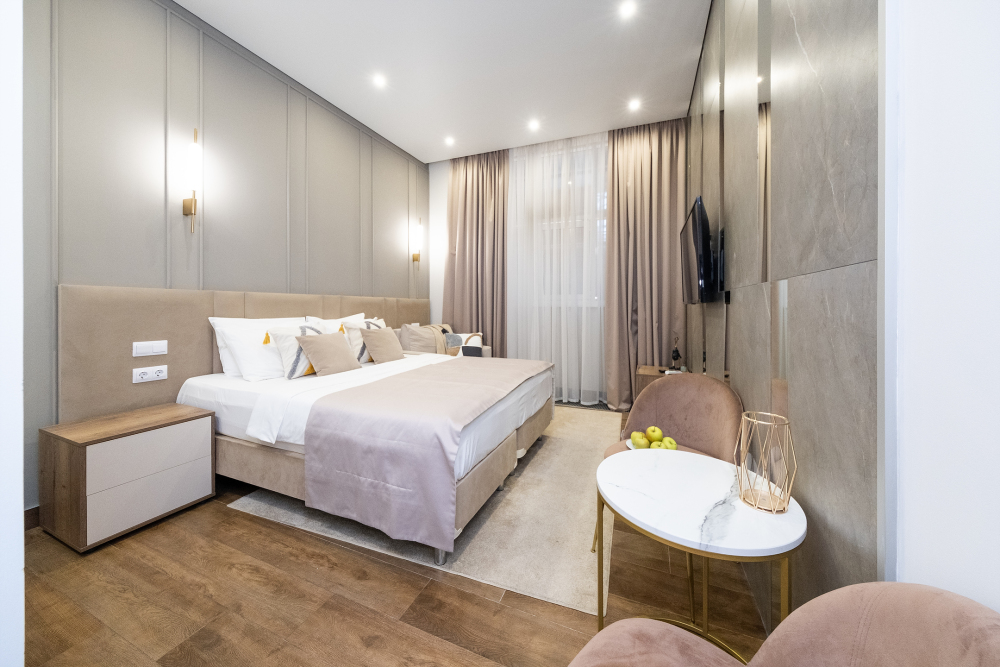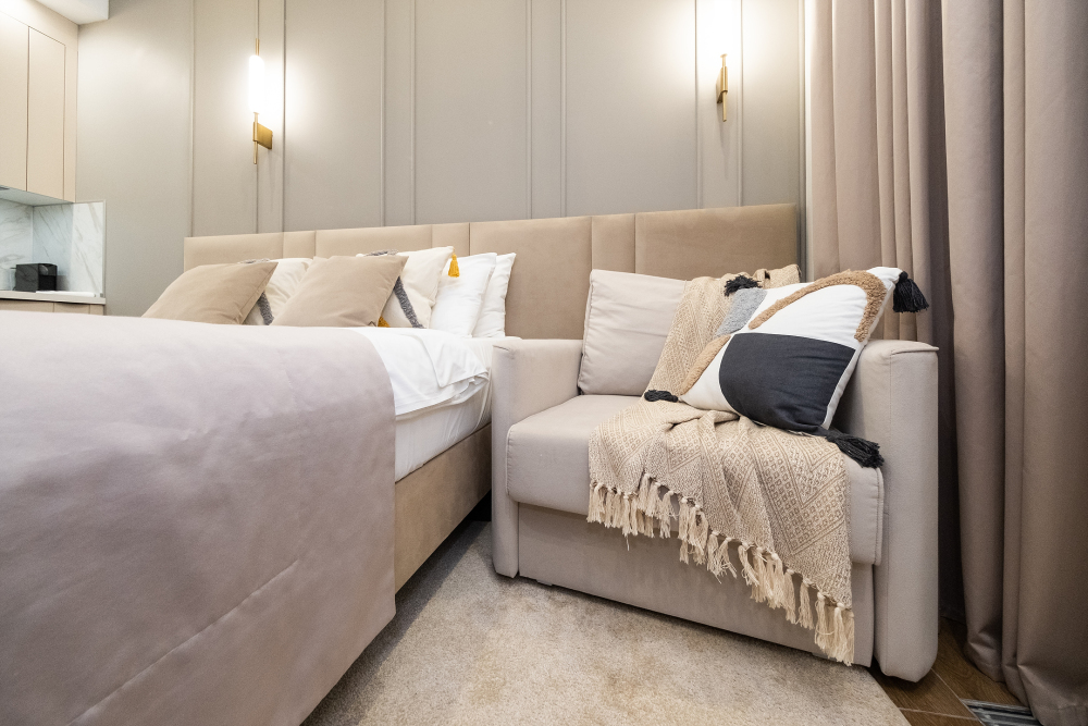Сладкий сон: насладитесь полноценным отдыхом на просторной двуспальной кровати и комфортабельном раскладном кресле.
