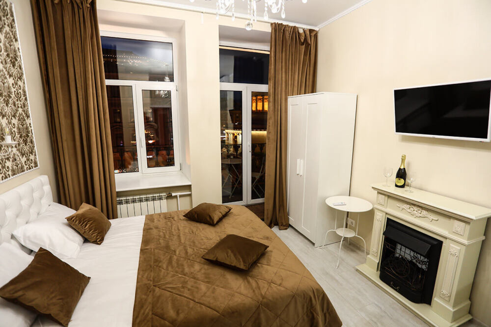 Студия с балконом и камином. Балкон выходит на Невский проспект. 2 минуты до Московского вокзала.
