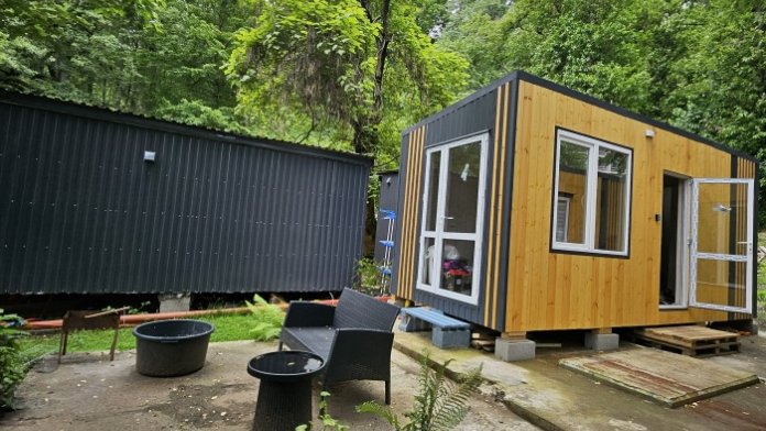 Наши дома - это новые, теплые и уютные помещения, оснащенные всем необходимым для комфортного проживания. В каждом доме есть мини-кухня с микроволновой печью и посудой, шкаф для одежды и удобный двуспальный раскладной диван. В ванной комнате Вас ждут душевая кабина, унитаз с микролифтом и стиральная машин.