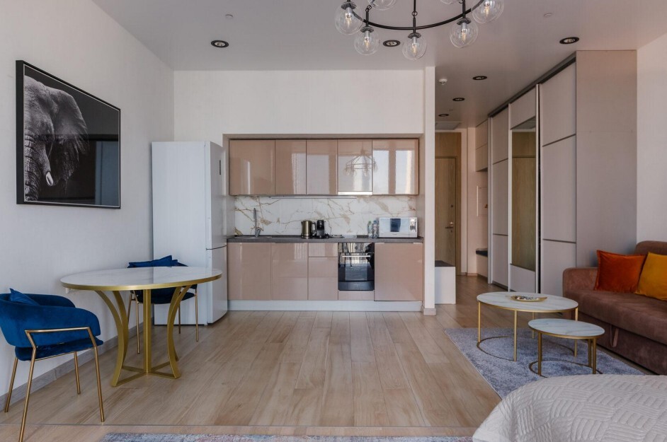 Стильные апартаменты располагаются в комплексе Neva Towers в деловом квартале «Москва-Сити». Оборудованная кухня идеально подходит для тех, кто любит готовить и делает это каждый день.