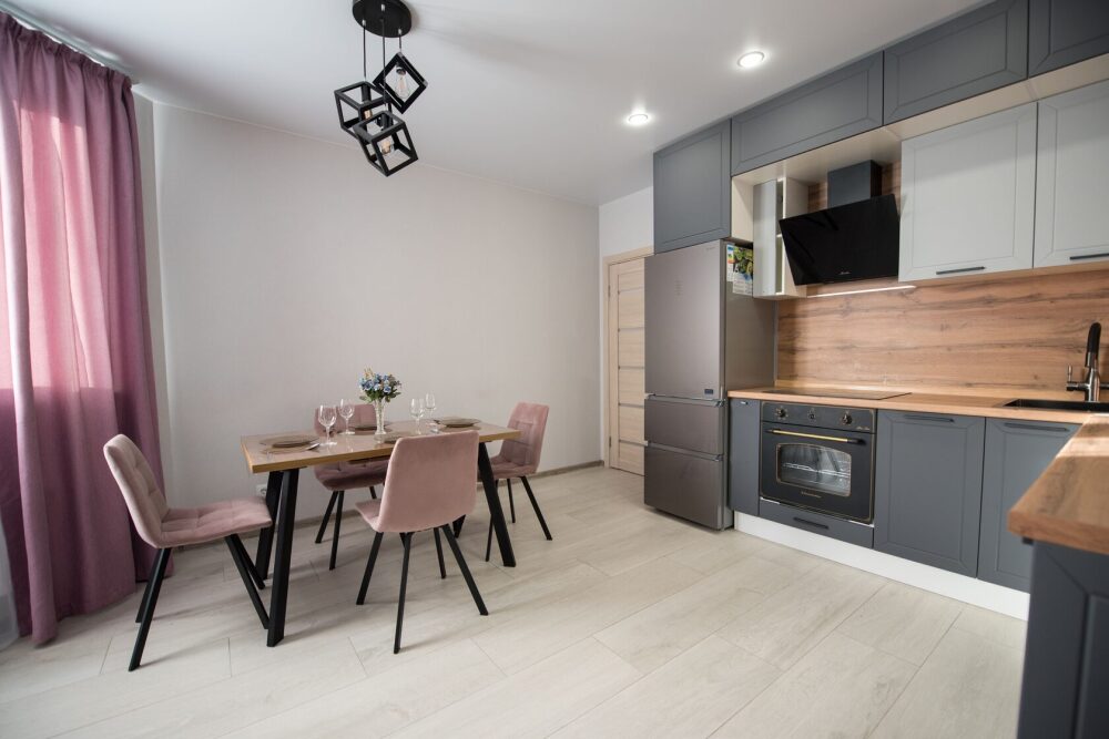 Дизайнерский ремонт и стильное оформление квартиры создадут атмосферу комфорта и гармонии. Евротрешка включает в себя 2 спальни и гостиную-кухню, оборудованную всем необходимым для приготовления пищи.