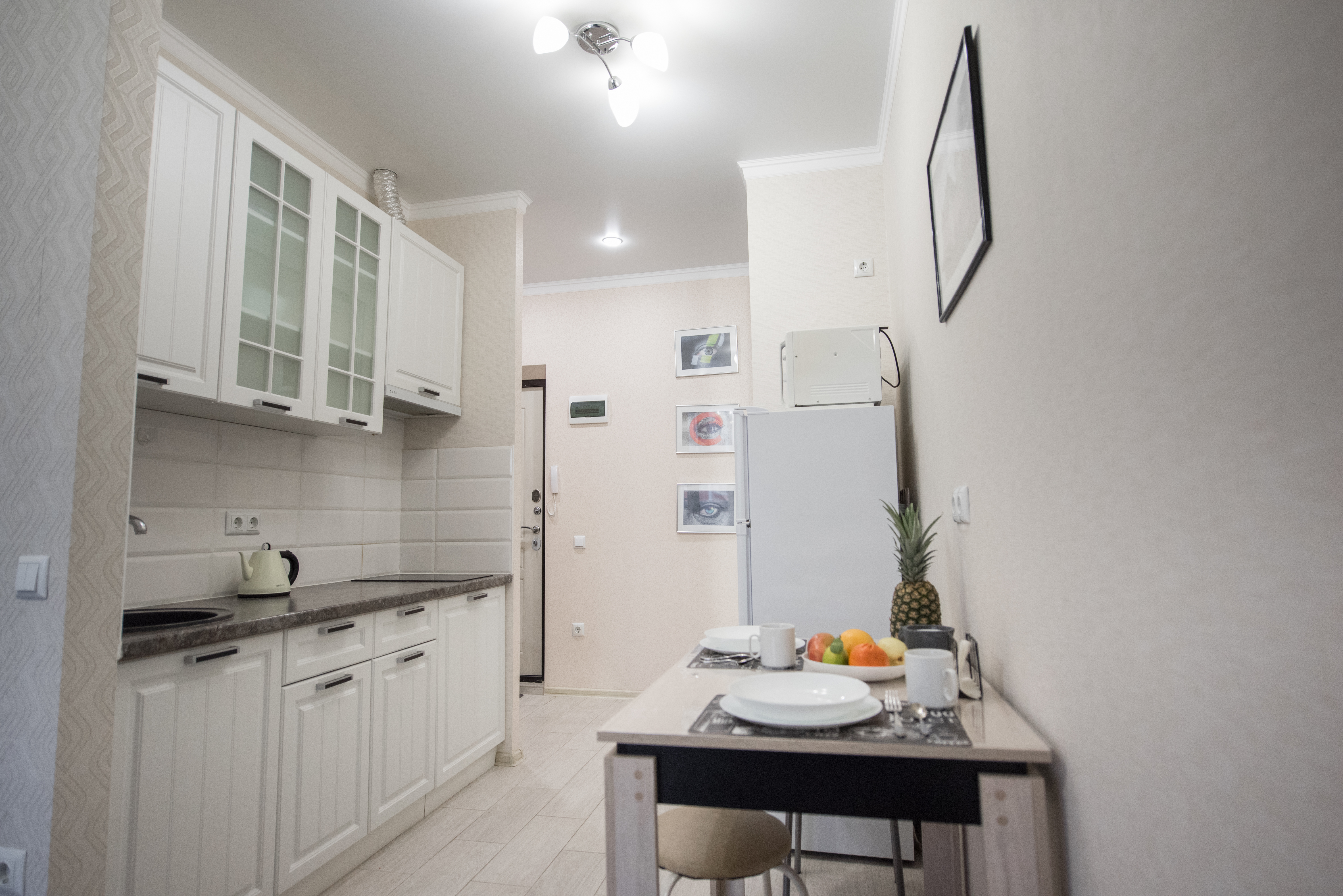 Кухня оборудована всей необходимой посудой, чтобы Вы могли приготовить себе вкусные блюда. Вам не придется беспокоиться о горячей воде, так как в квартире предусмотрен водонагреватель.