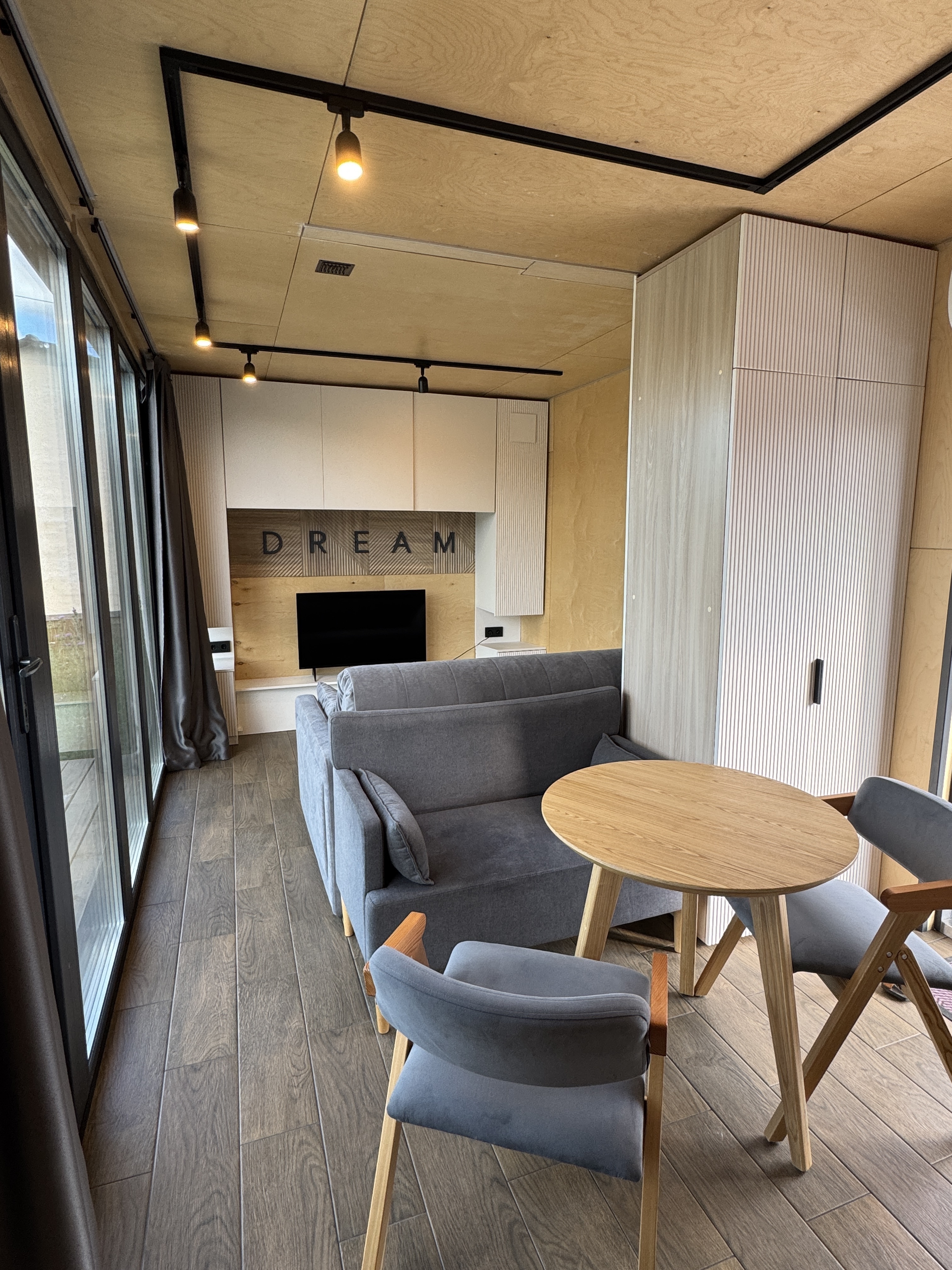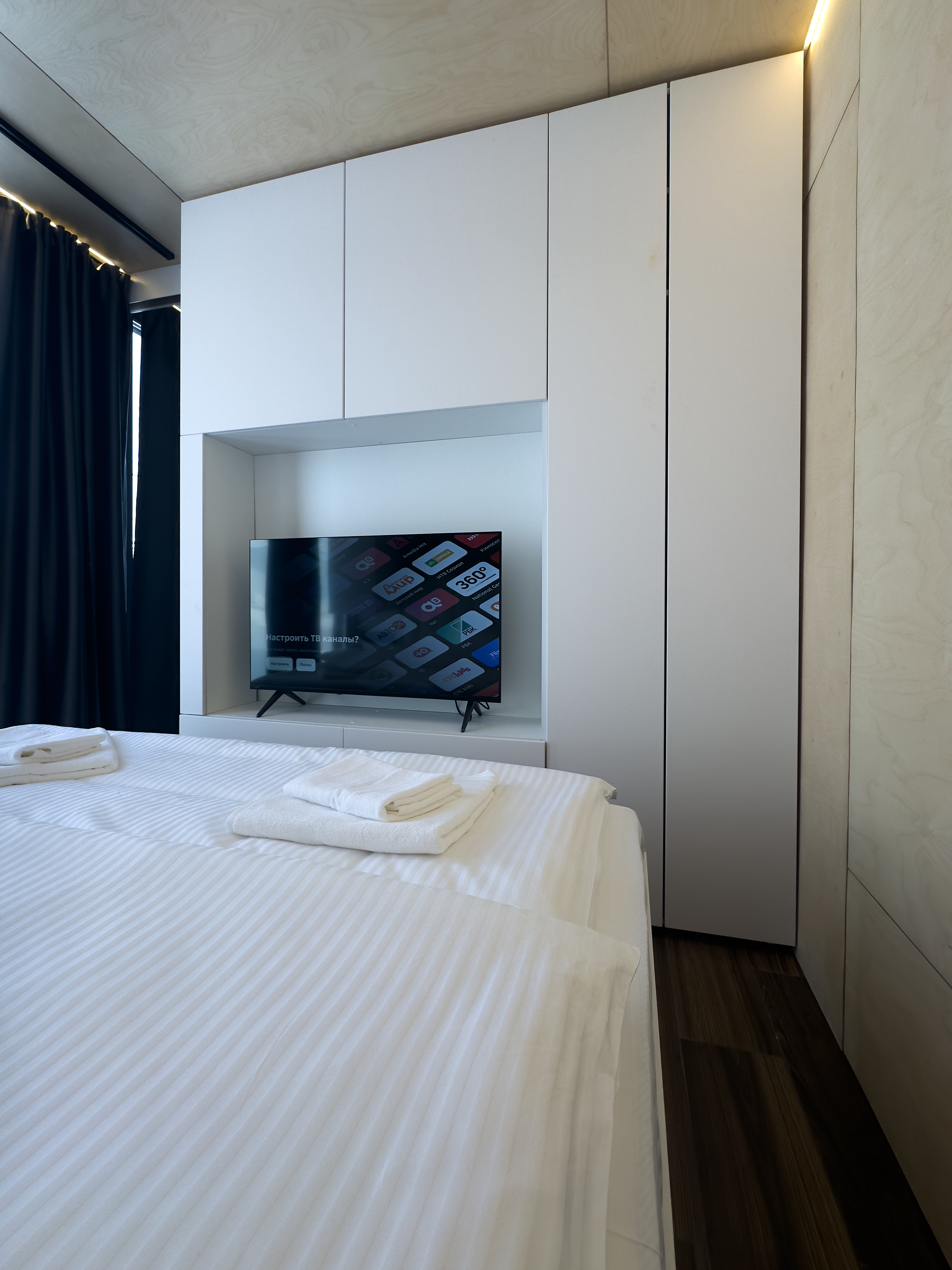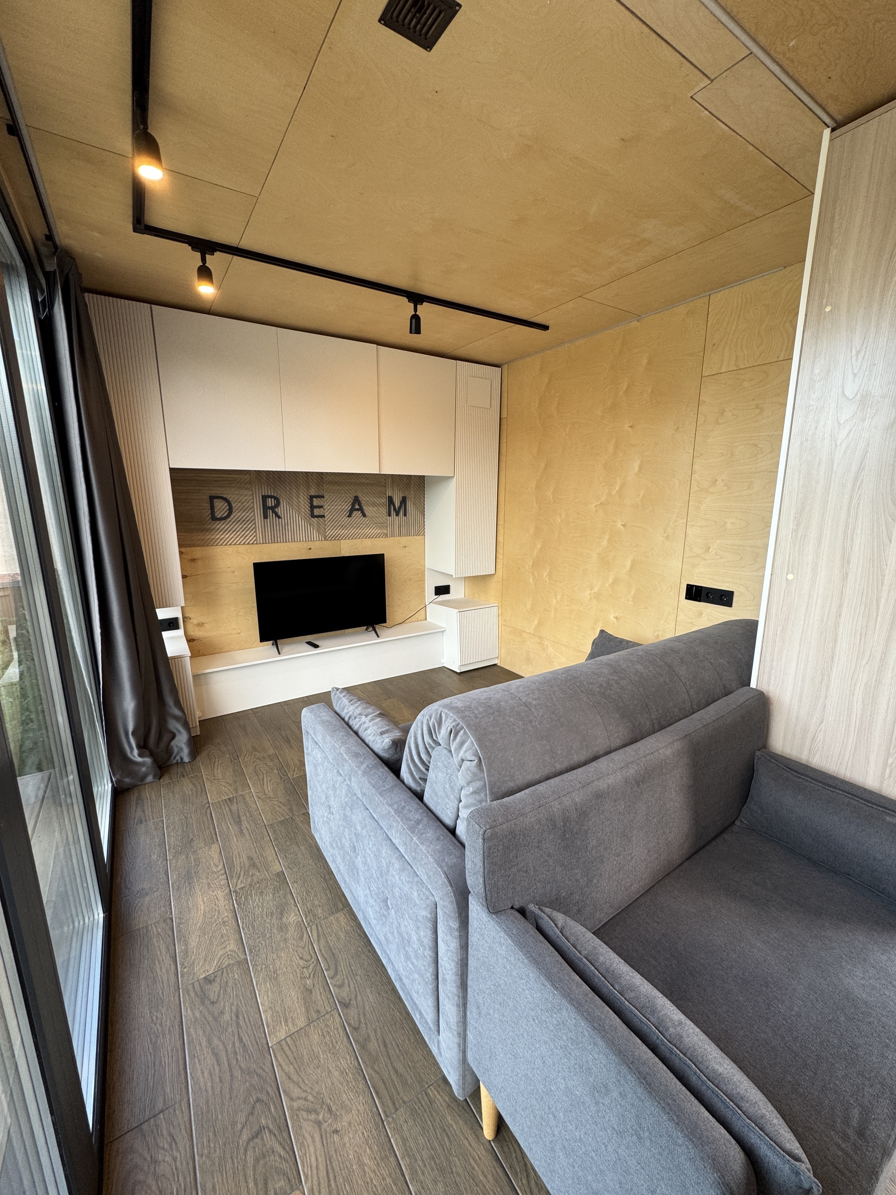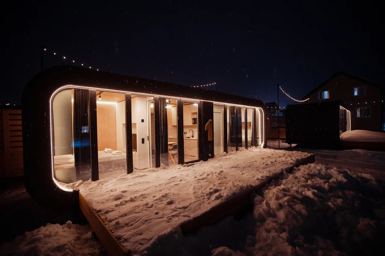 Наши дома будут интересны любителям современного минимализма в дизайне интерьера. Много рассеянного, спокойного света. Панорамные окна соединяют внутреннее пространство с окружающим миром. После активного отдыха расслабиться Вам помогут лаунж-зоны наших домов - просторные и комфортные 2-спальные кровати. Беспрерывно насыщать кислородом комнаты позволяет установленная приточная система очистки воздуха. Также в Вашем пользовании умный дом, который управляется через Яндекс станцию Алиса, а это свет, теплый пол, вытяжка. Также в доме есть телевизор со смарт ТВ в каждой комнате и WiFi.