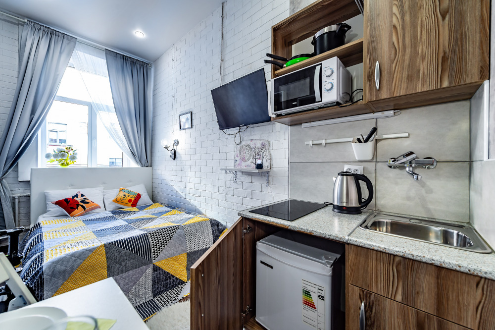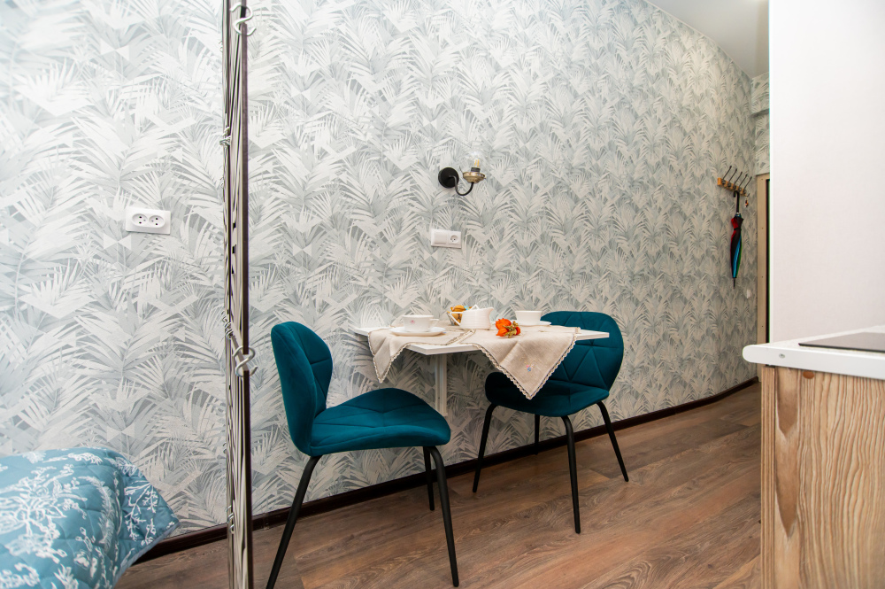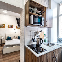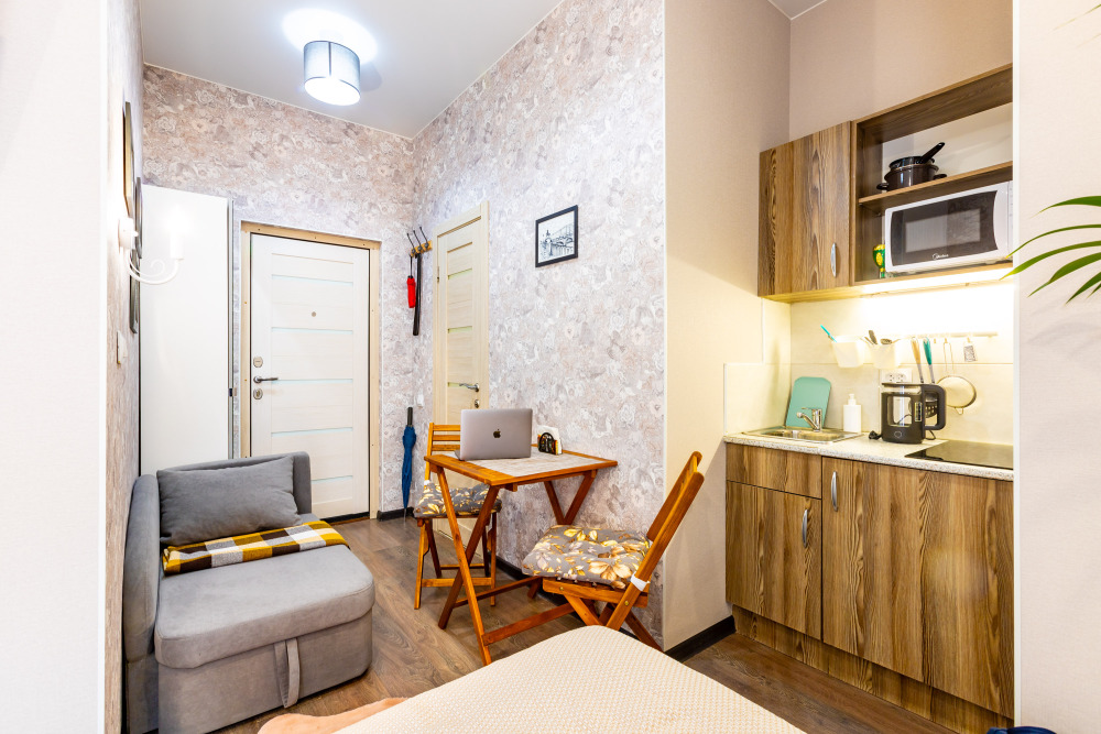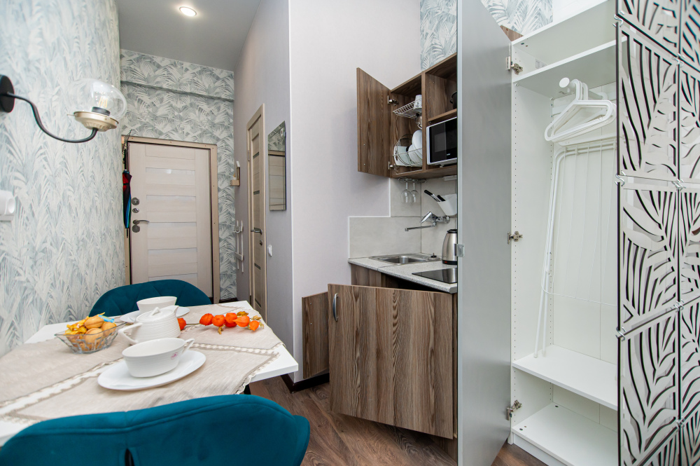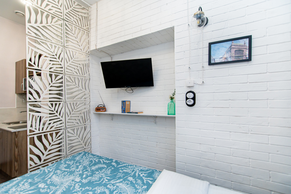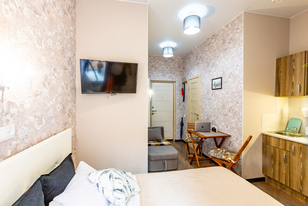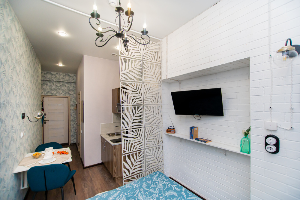 Апартаменты оборудованы всем необходимым для комфортного проживания: просторное помещение, современные и полностью оборудованные ванная комната и кухня. Студия отличается стильным дизайном и удобной мебелью.