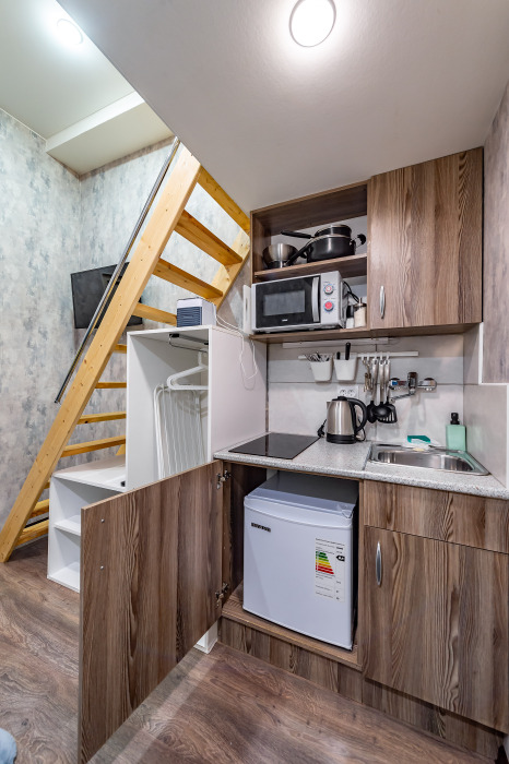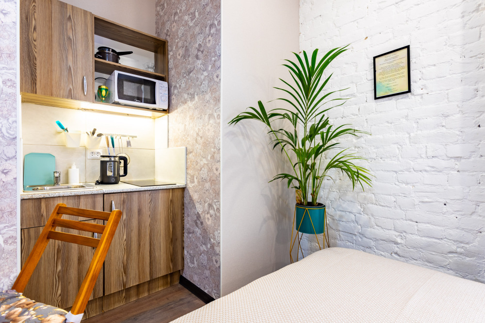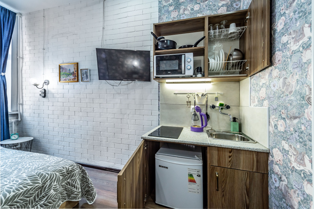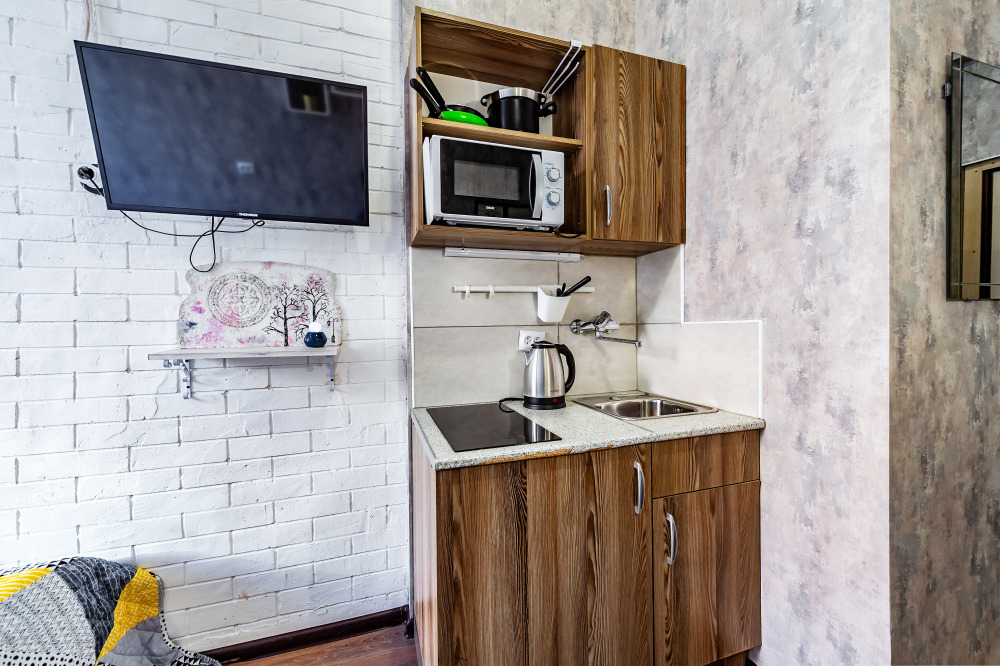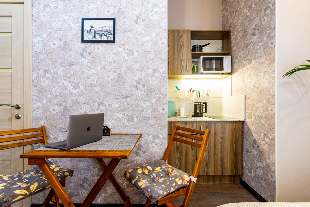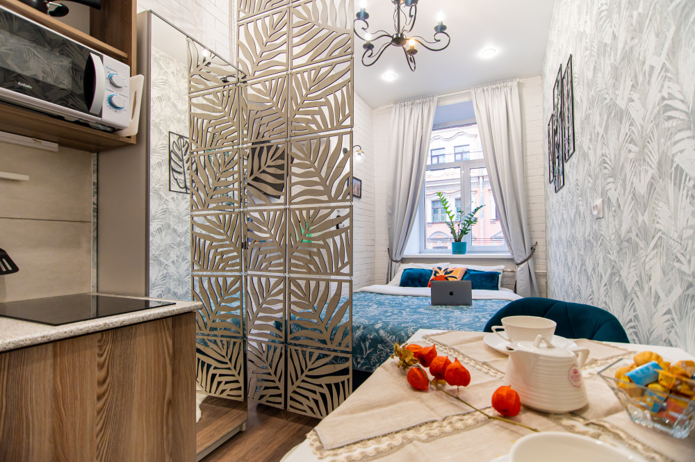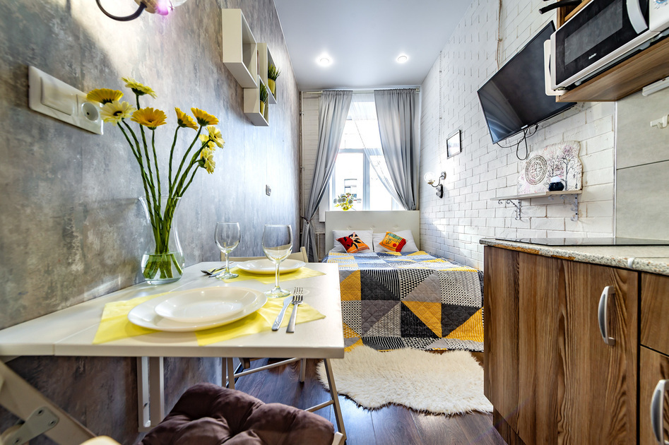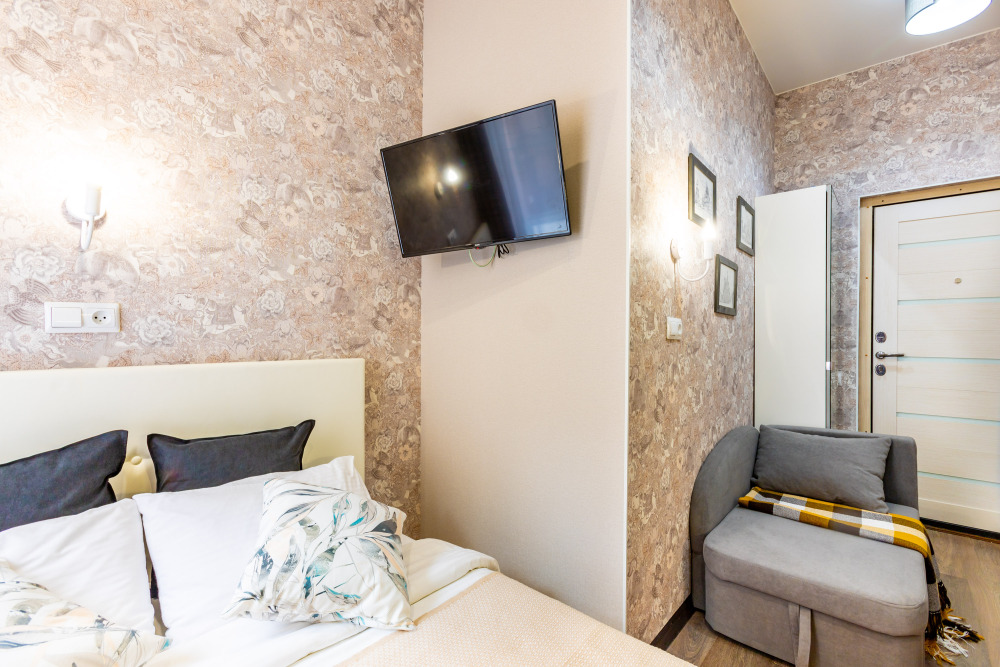 Апартаменты оборудованы всем необходимым для комфортного проживания: просторное помещение, современные и полностью оборудованные ванная комната и кухня. Студия отличается стильным дизайном и удобной мебелью.