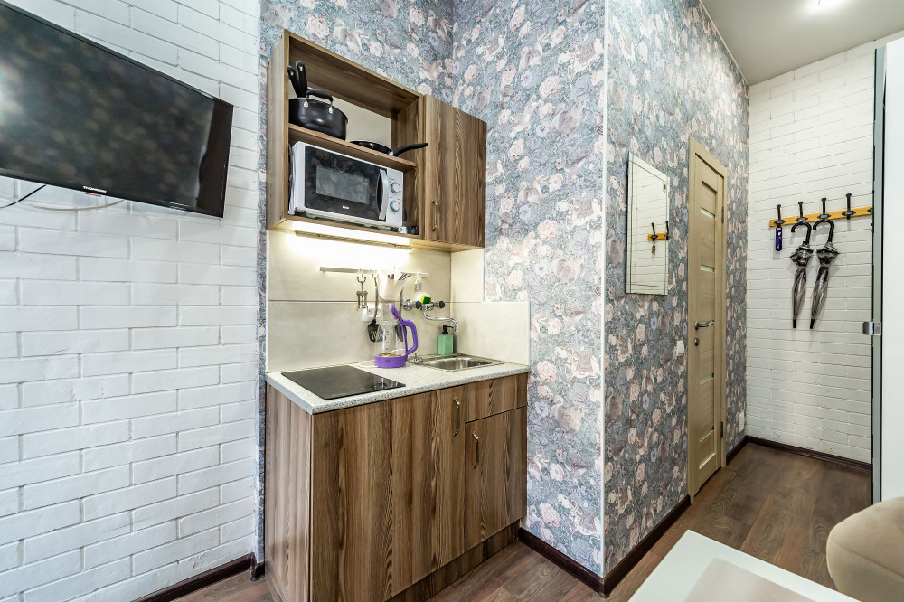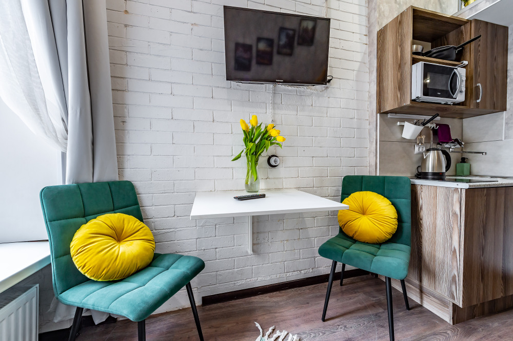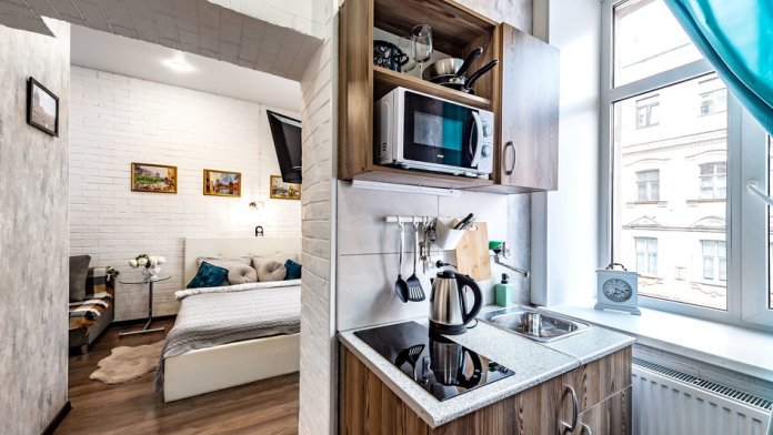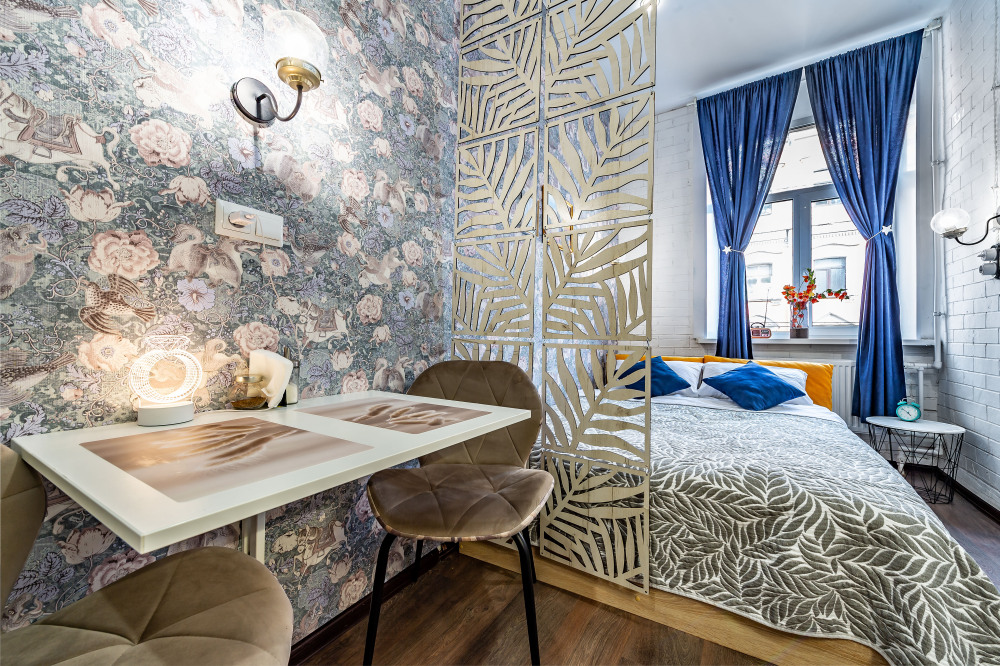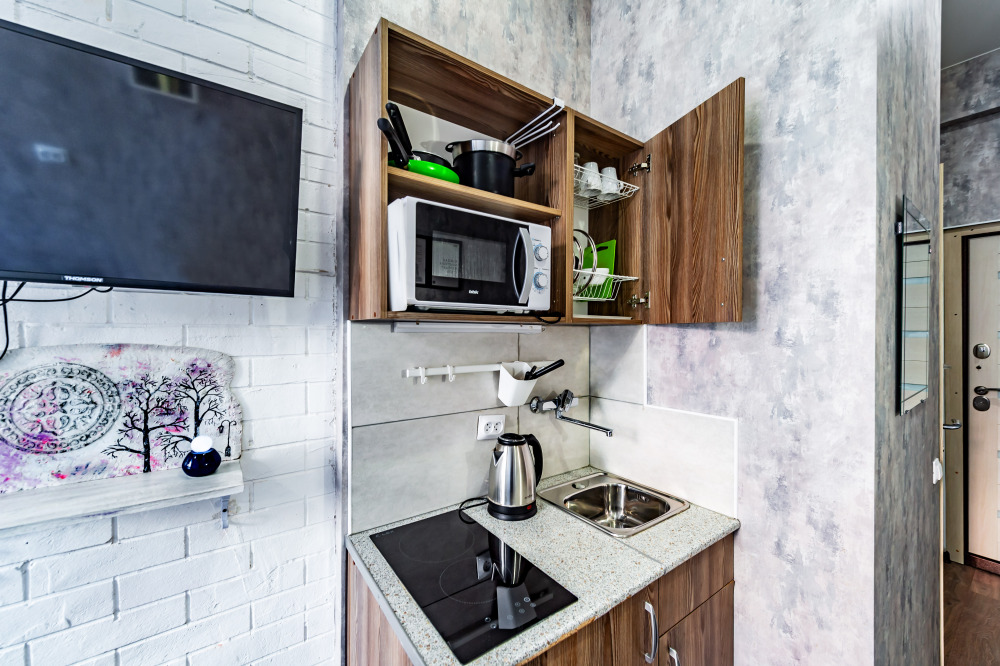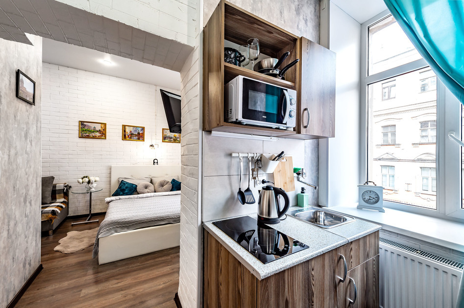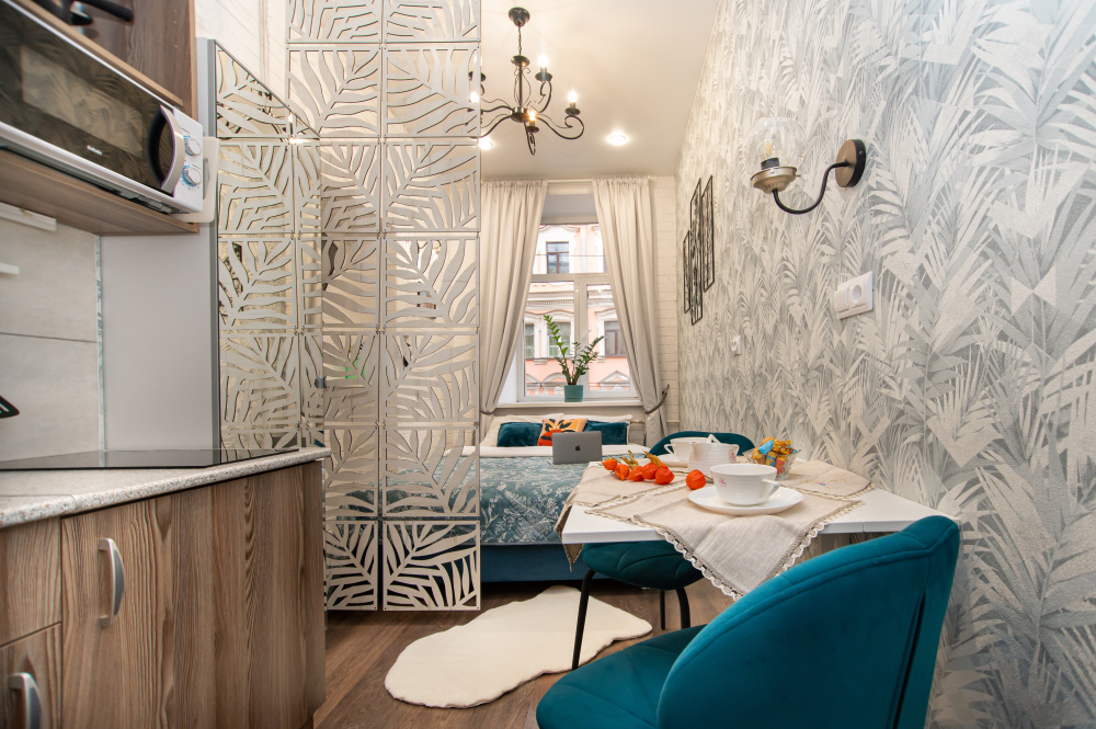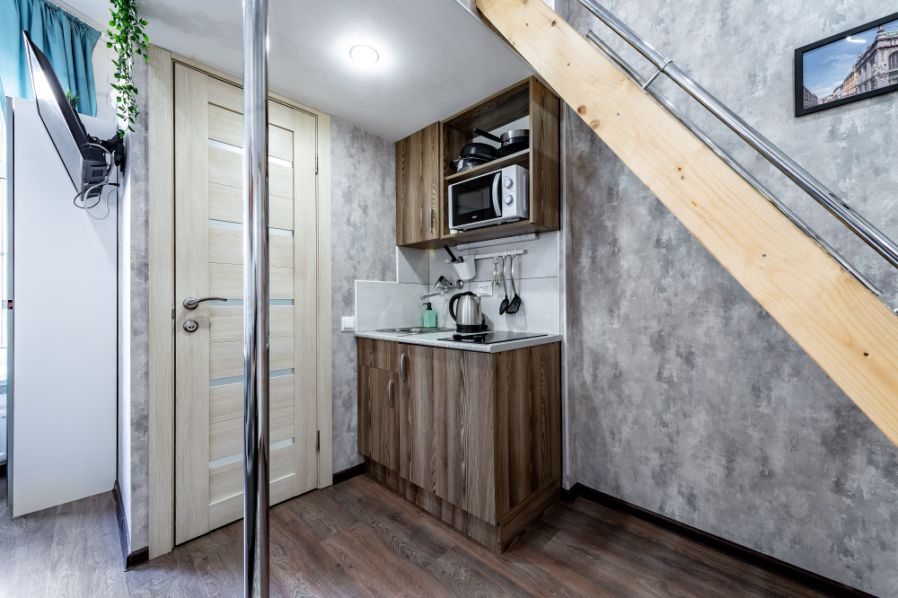 Апартаменты оборудованы всем необходимым для комфортного проживания: просторное помещение, современные и полностью оборудованные ванная комната и кухня. Студия отличается стильным дизайном и удобной мебелью.