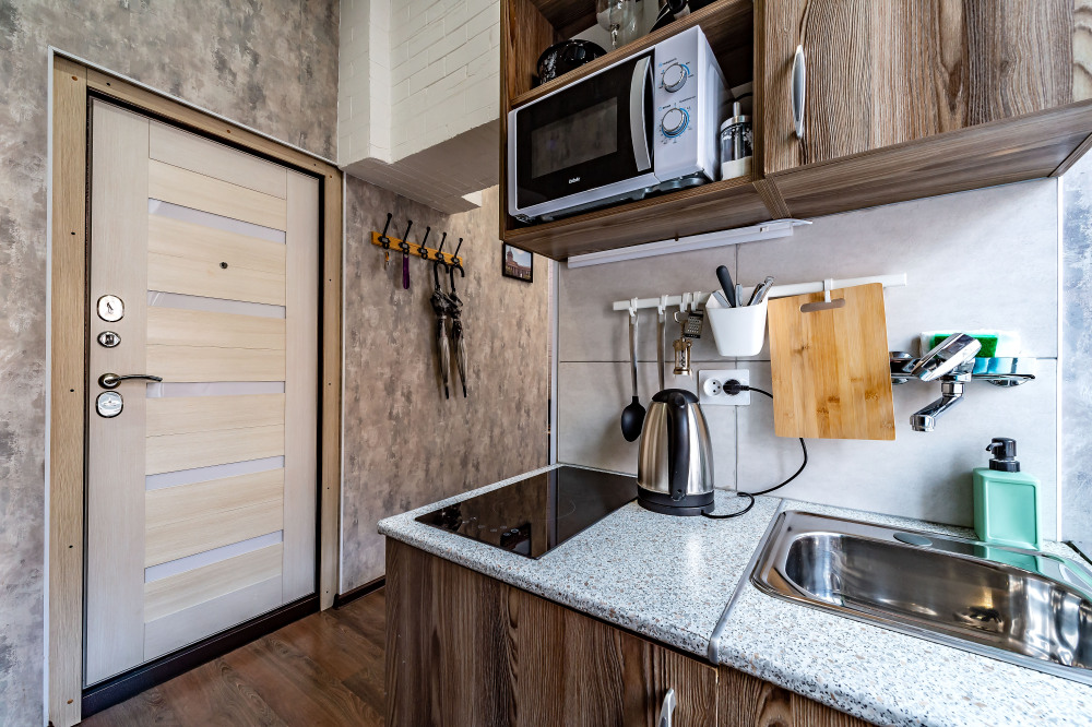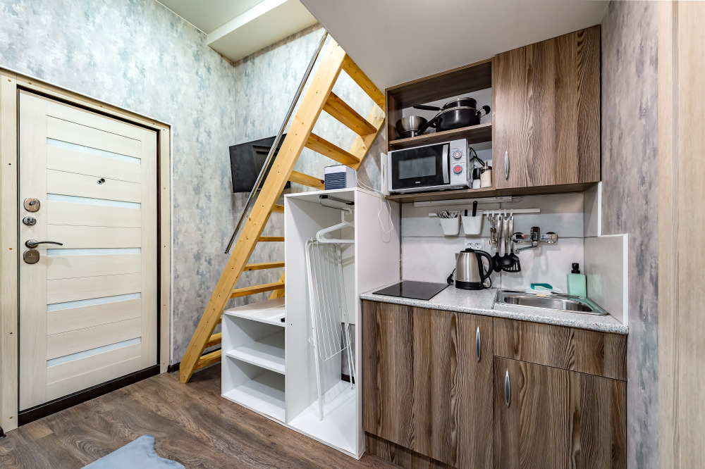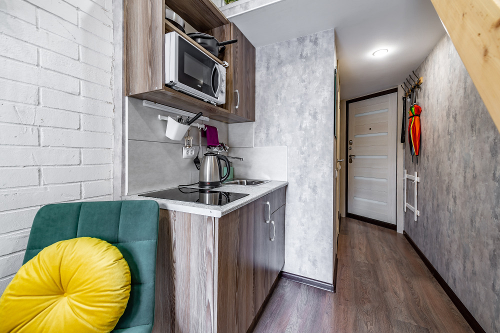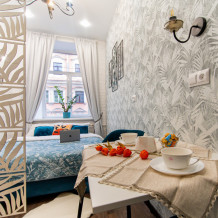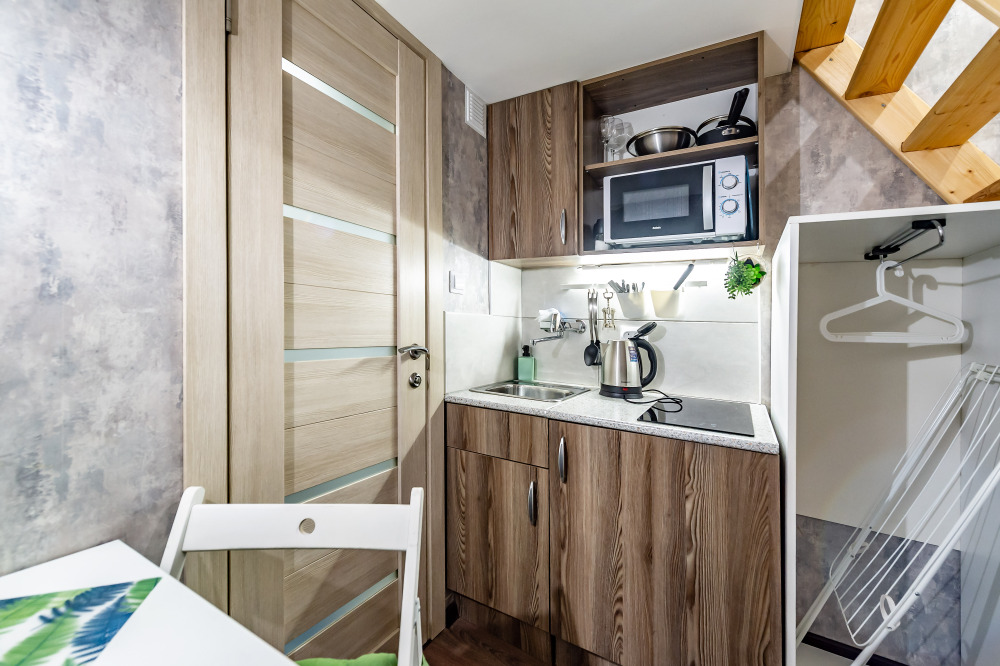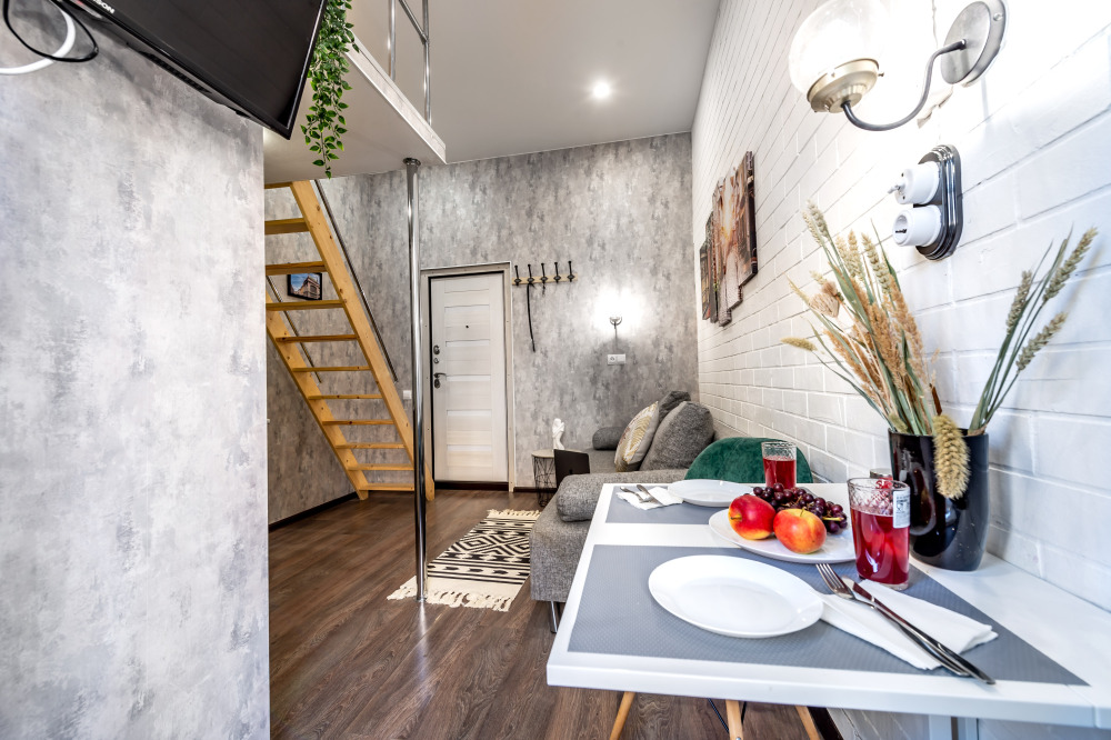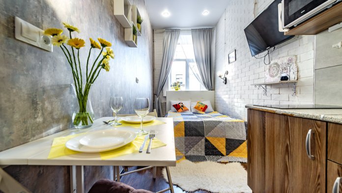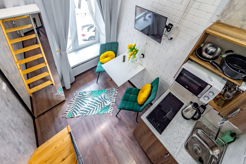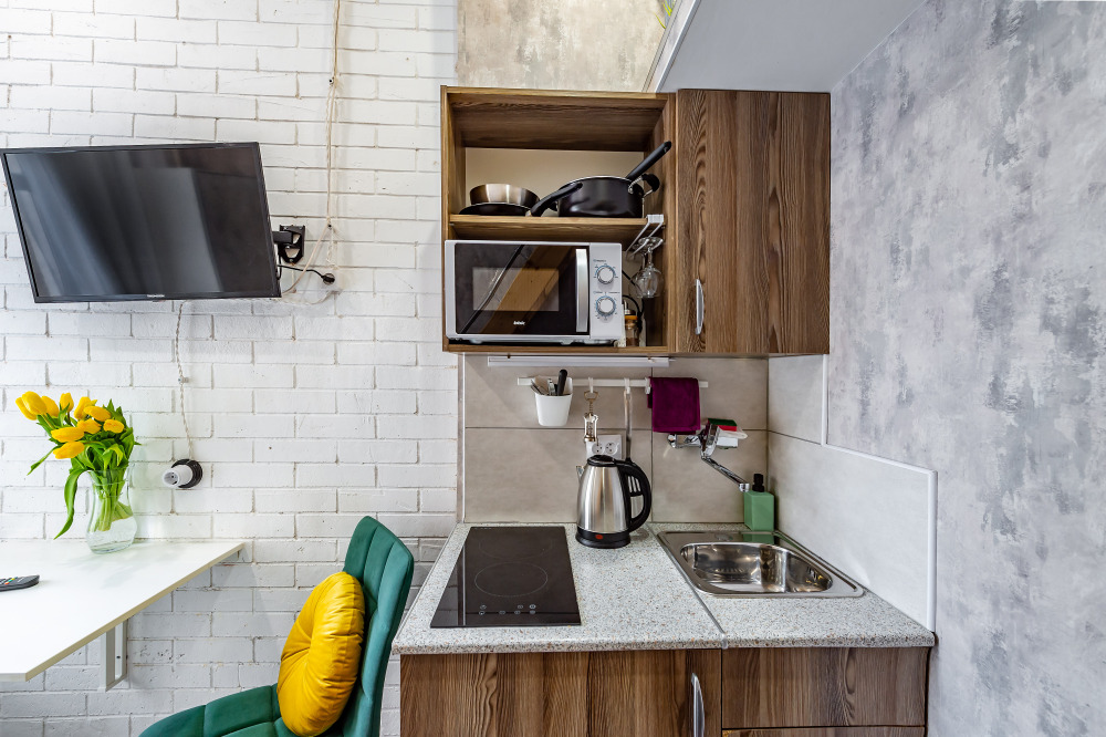 Апартаменты оборудованы всем необходимым для комфортного проживания: просторное помещение, современные и полностью оборудованные ванная комната и кухня. Студия отличается стильным дизайном и удобной мебелью.
