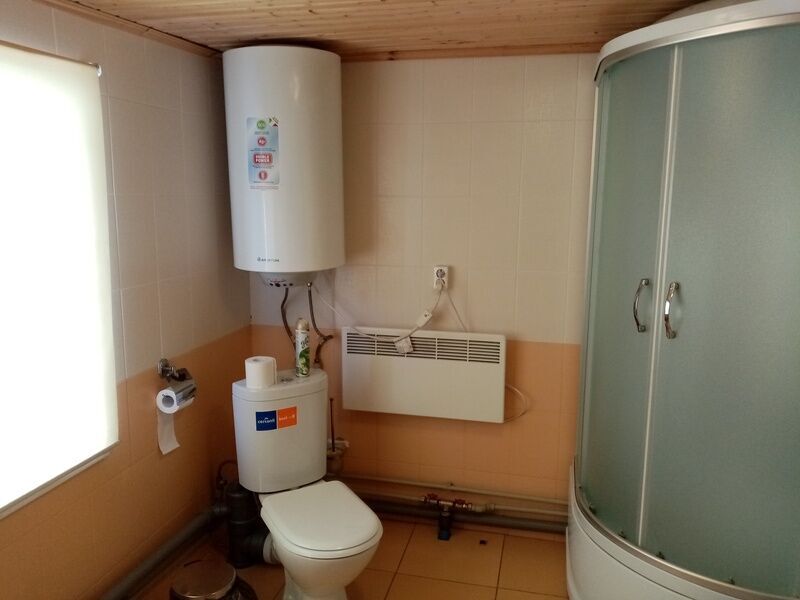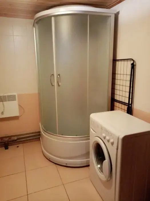 - санузел 9 м кв, туалет, душевая кабина, бойлер, стиральная машина, тёплый пол, раковина,вода-артезианская скважина;