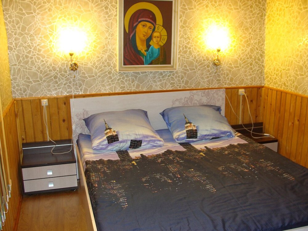 - спальня 12 м кв, двухспальная кровать, прикроватные тумбочки;