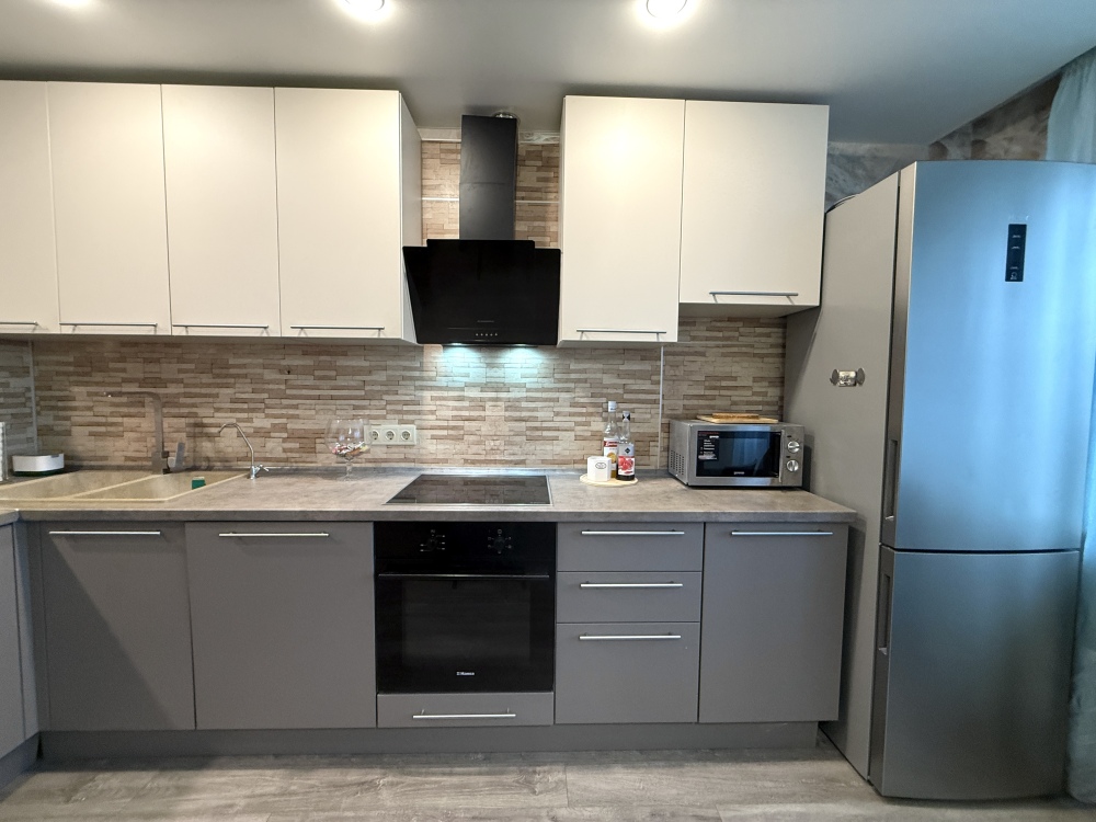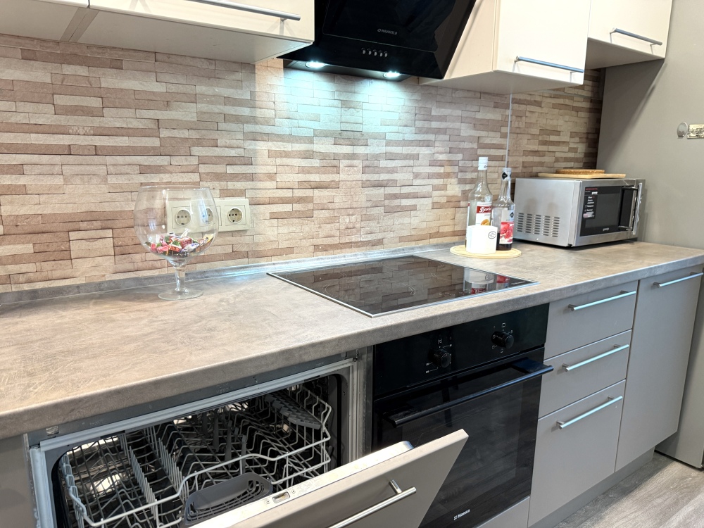 - современная бытовая техника: электрическая плита, двухкамерный холодильник, электрочайник, свч, фен, утюг, стиральная машина, посудомоечная машина.