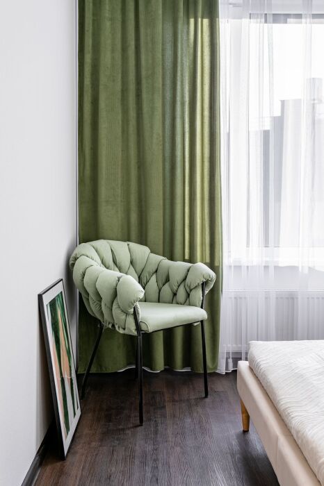 В квартире 2 комнаты и кухня-гостиная («евротрешка»), есть все необходимое как для длительного, так и для краткосрочного пребывания. Все окна и лоджия выходят во внутренний двор без машин. В квартире три спальных места с размещением до 5 человек: Спальня 1: двуспальная кровать 160, вместительный шкаф, кресло; Спальня 2: двуспальная кровать 160; тв с тумбой, рабочий стол, большая лоджия с зоной отдыха; Кухня-гостиная: раскладной диван 120, стол, три стула, тв с тумбой, кухонный гарнитур (плита, духовка, большой холодильник, свч). Санузел раздельный: большая ванная комната с ванной, раковиной, тумбой стиральной машинкой. Туалет с унитазом и раковиной. В прихожей вместительный шкаф для хранения.