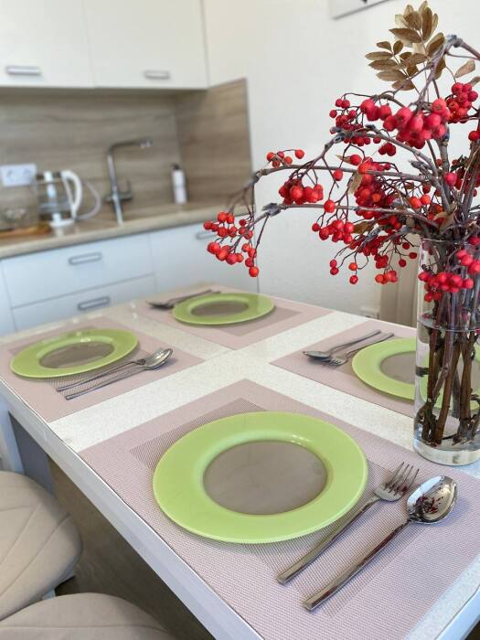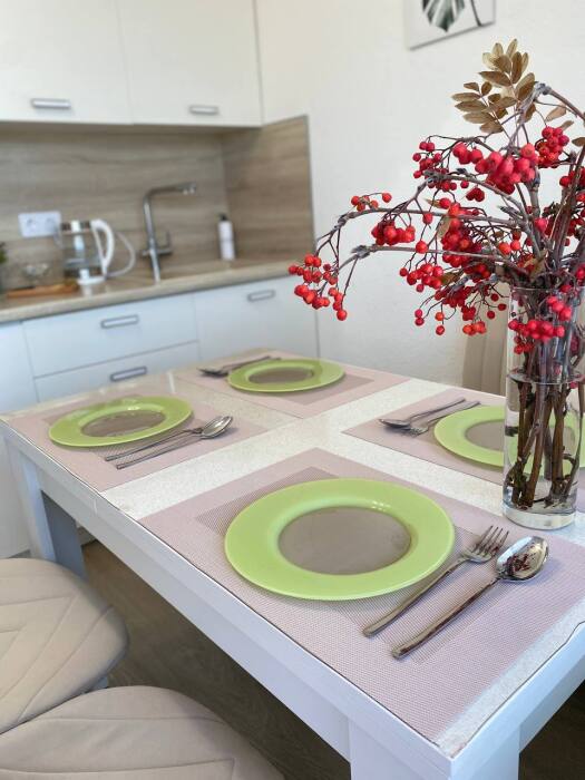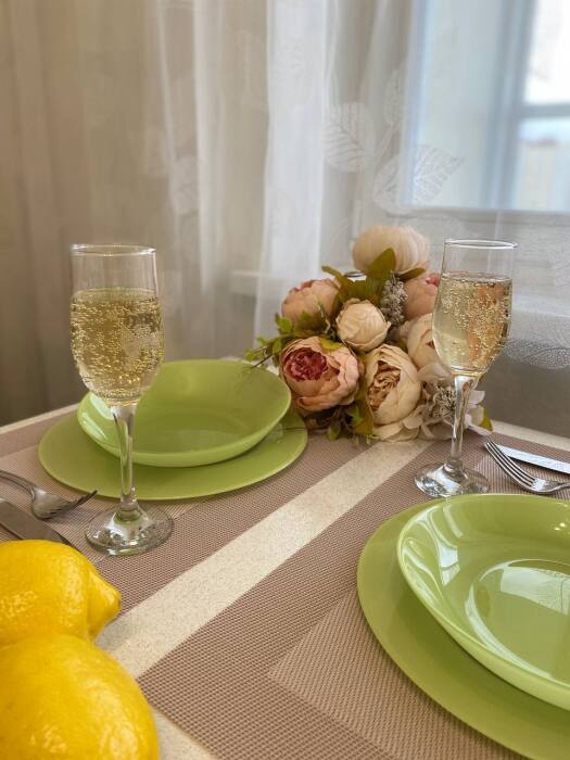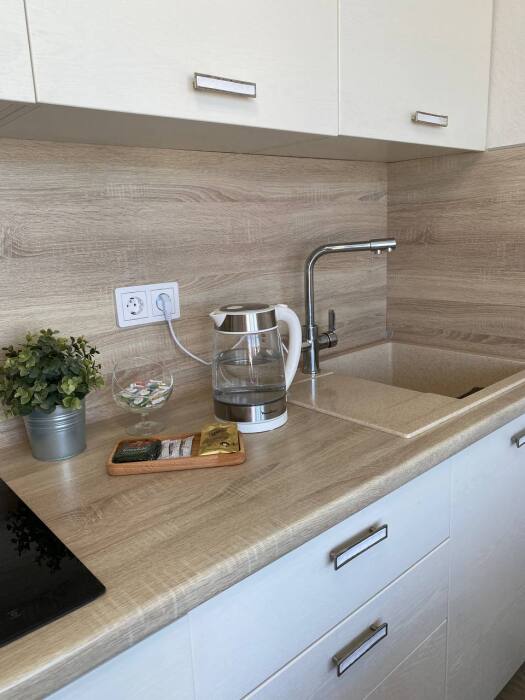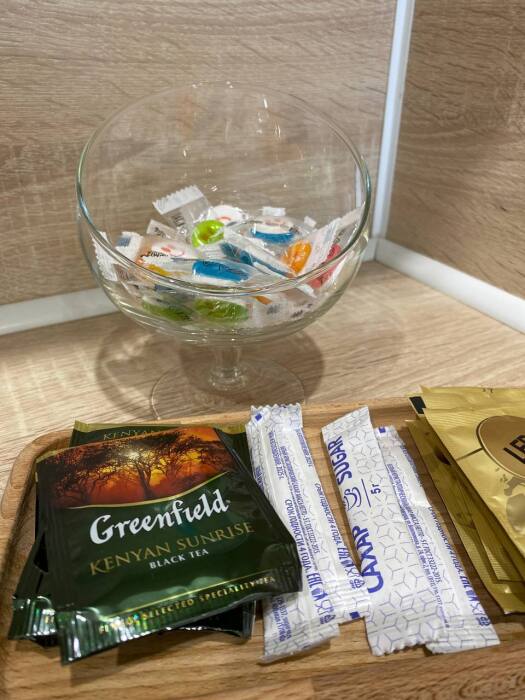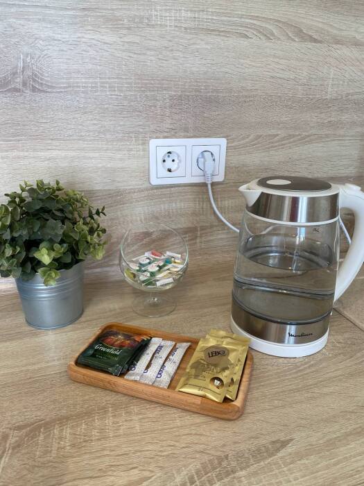 - Полностью оборудованная кухня: вся необходимая техника и посуда, чай, кофе.