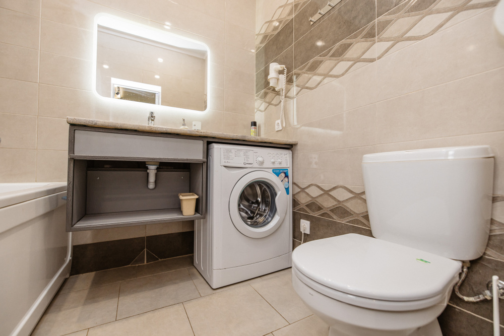 TV, санузел с ванной, фен, стиральная машина, подогреваемые полы, Wi-Fi, кондиционер.
