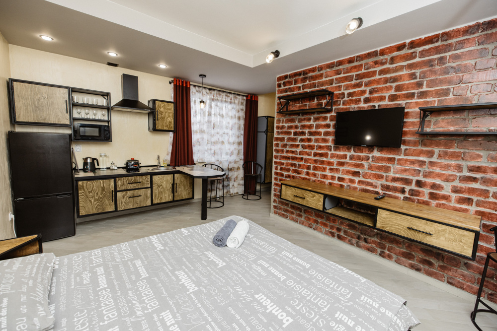 TV, санузел с ванной, фен, стиральная машина, подогреваемые полы, Wi-Fi, кондиционер.