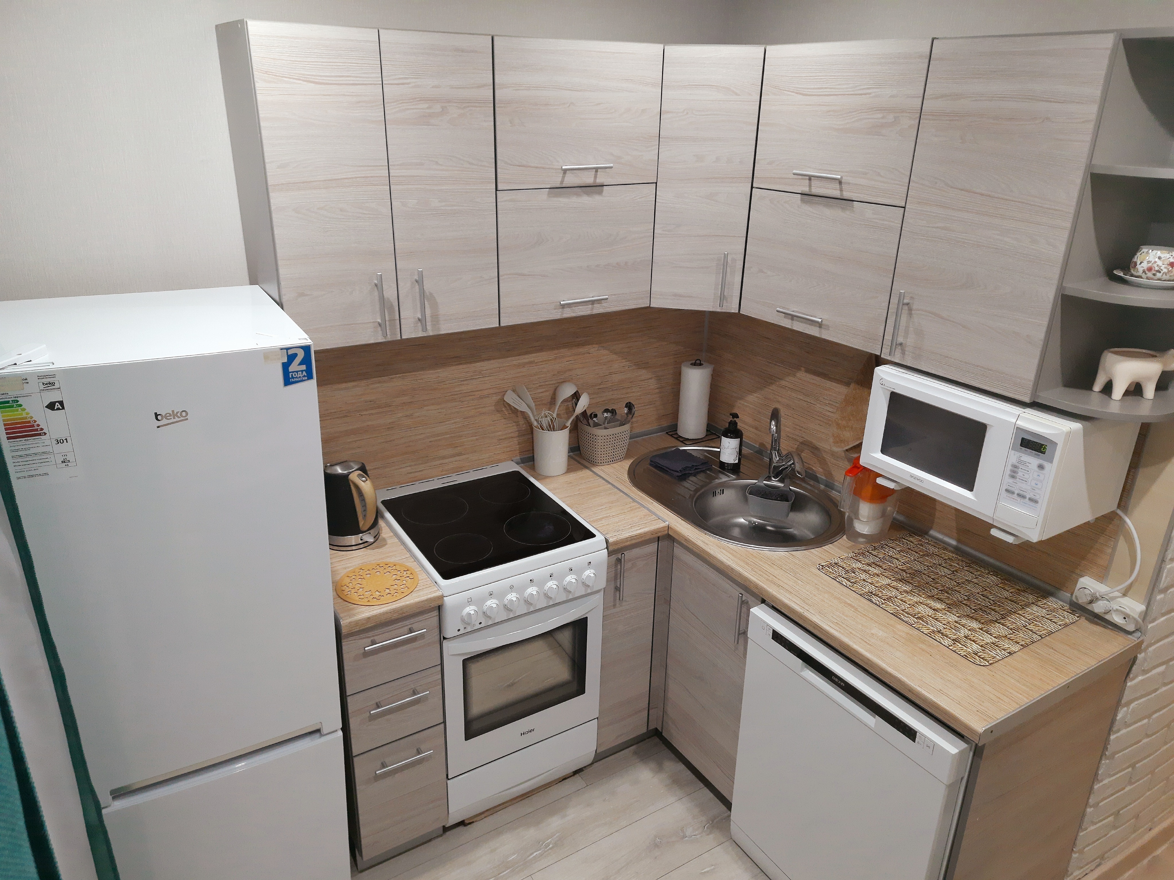 - чайник, микроволновка, холодильник, плита, духовой шкаф;