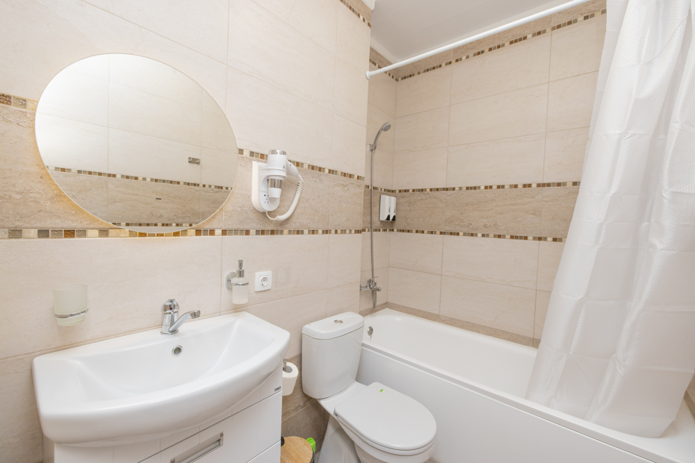 TV, санузел с ванной, фен, стиральная машина, подогреваемые полы, Wi-Fi, кондиционер.