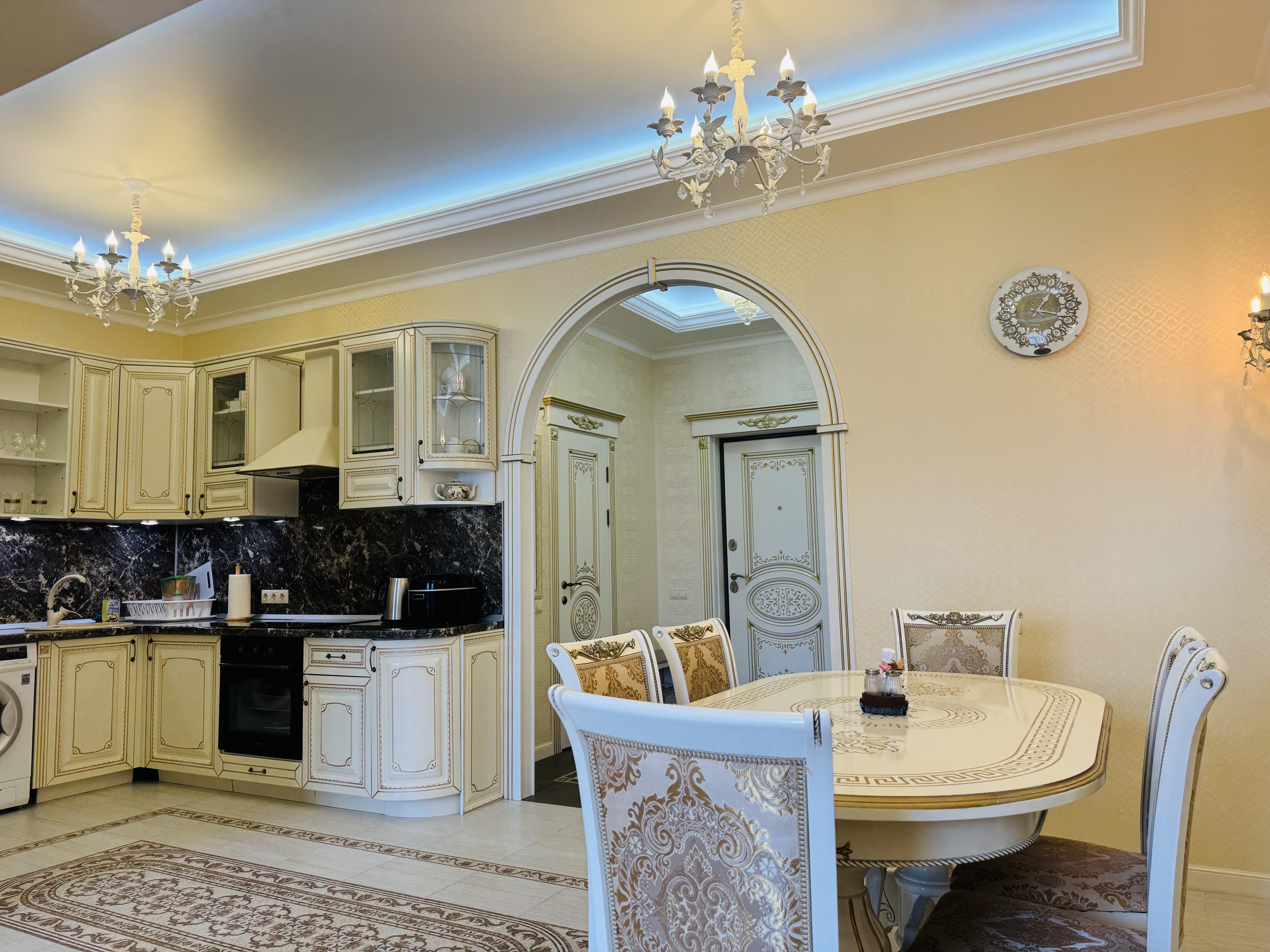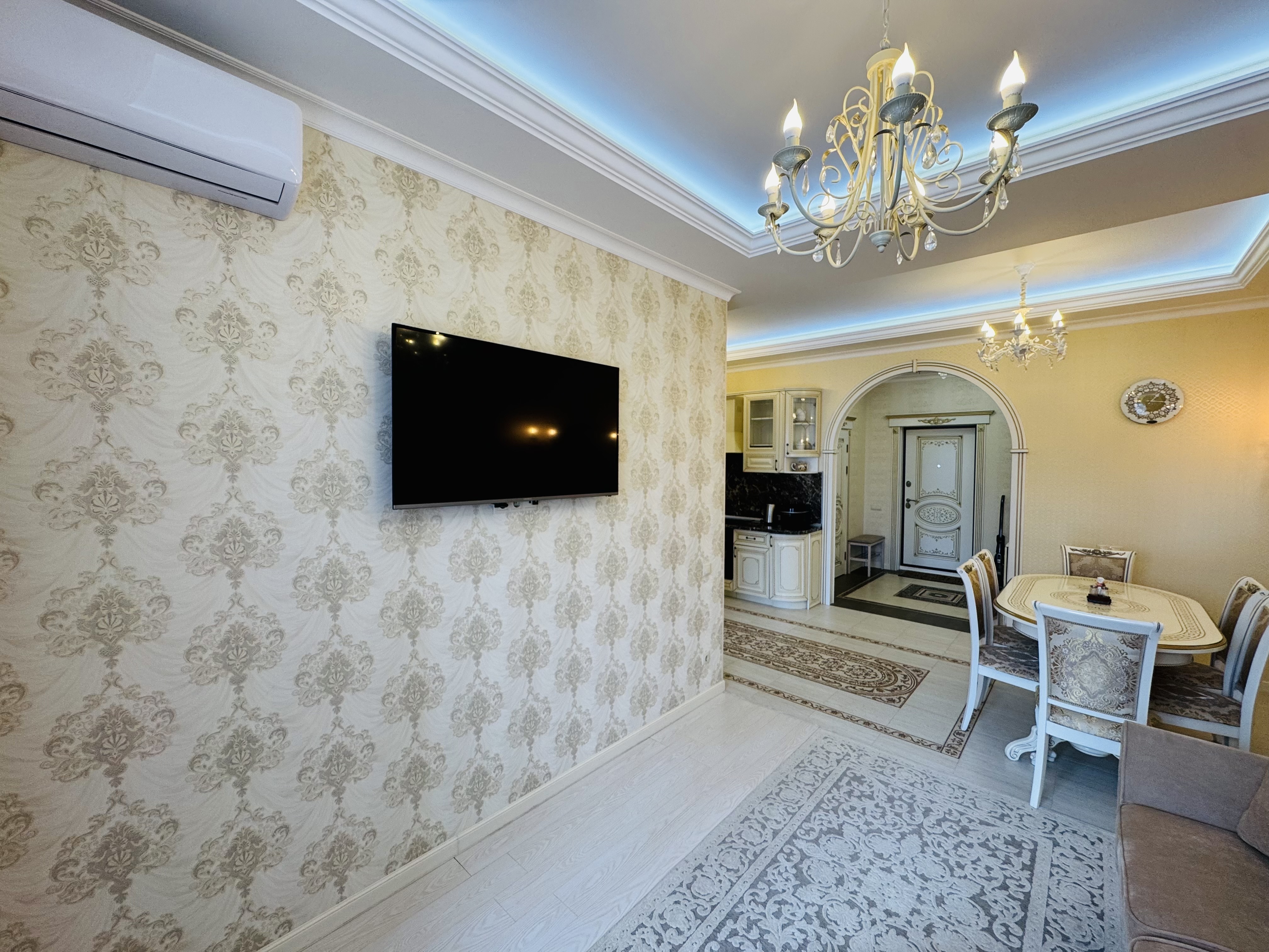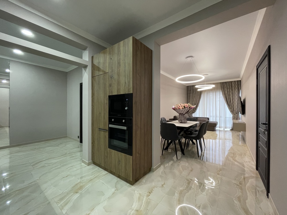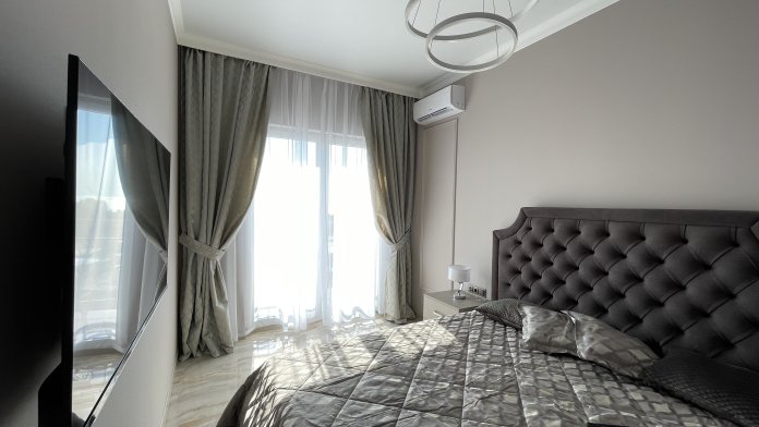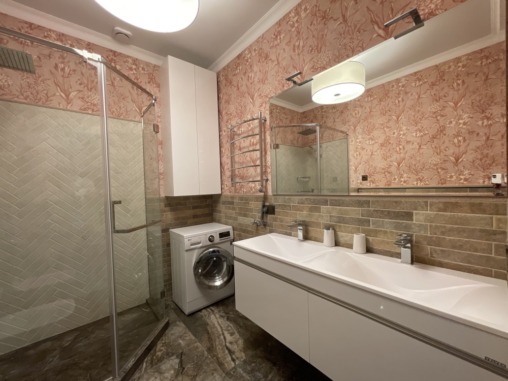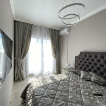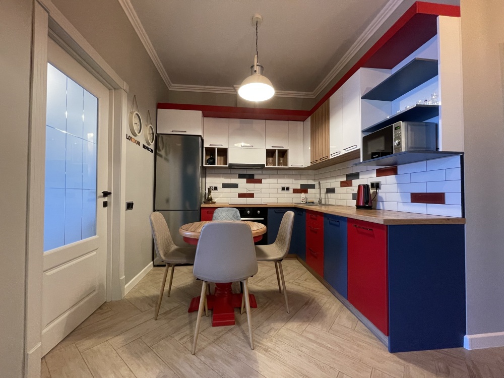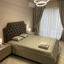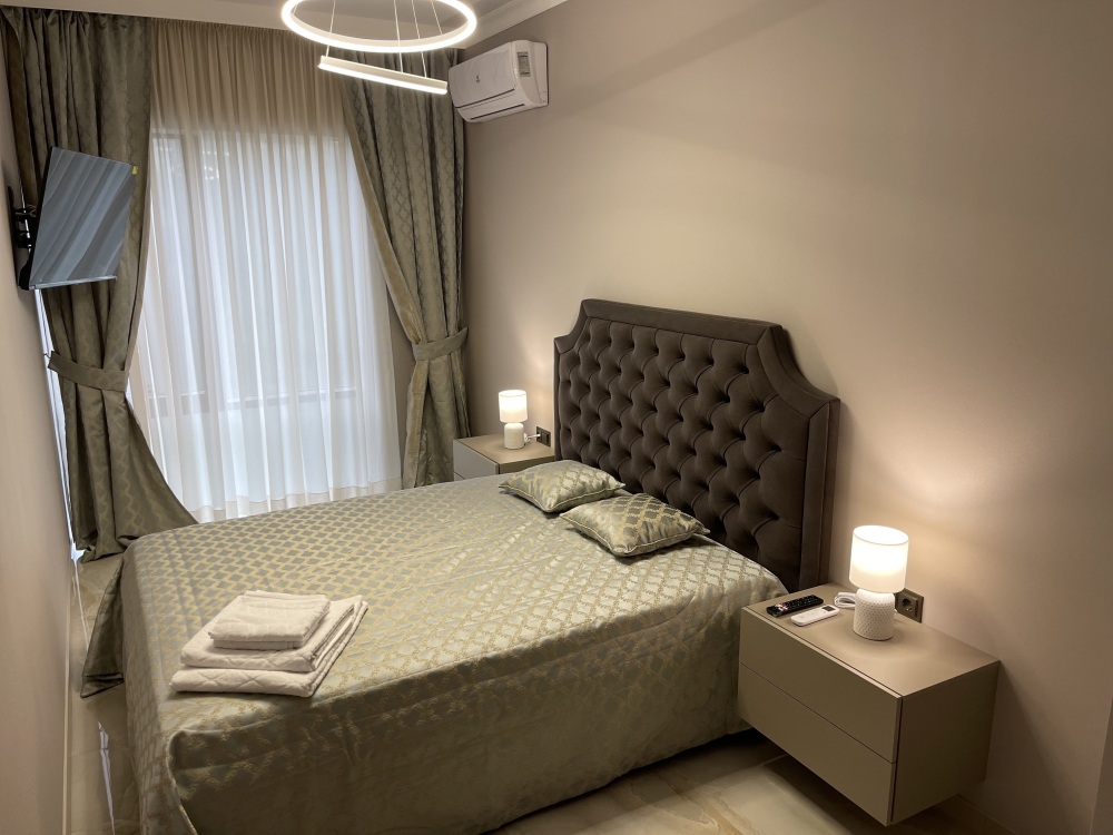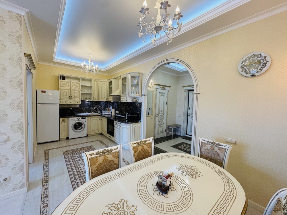 В квартире есть всё необходимое для проживания: холодильник, микроволновка, духовка, посудомоечная машина, кондиционер, стиральная машина, Wi-Fi и телевидение.