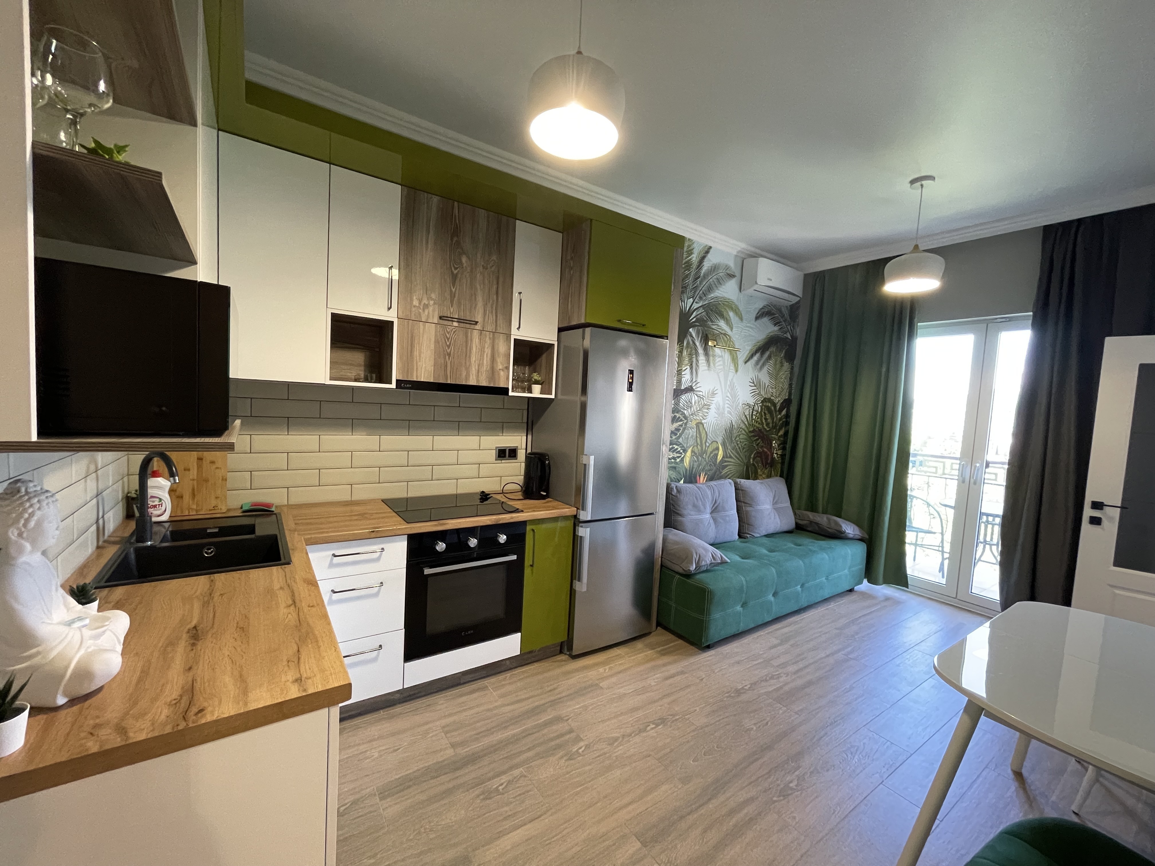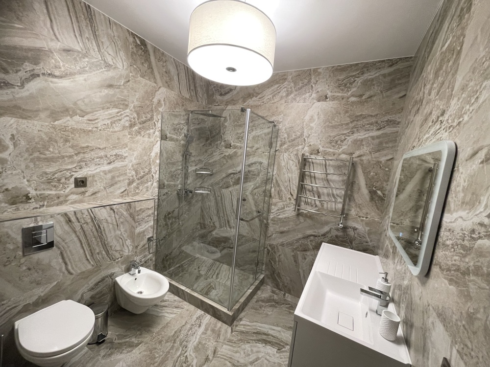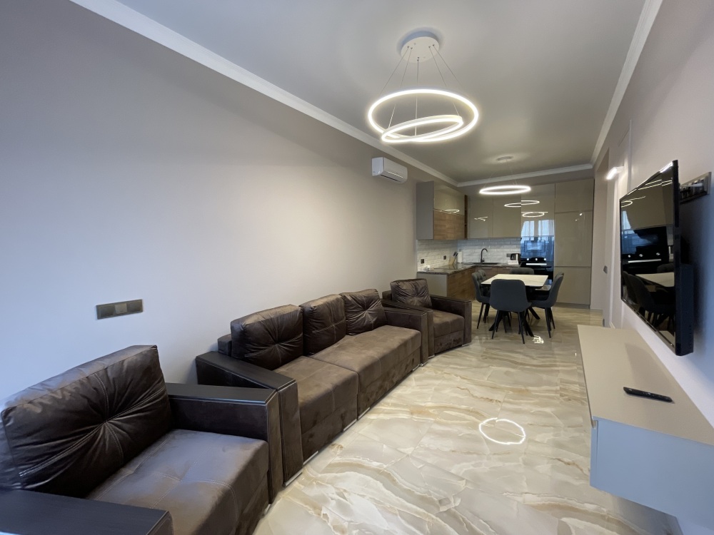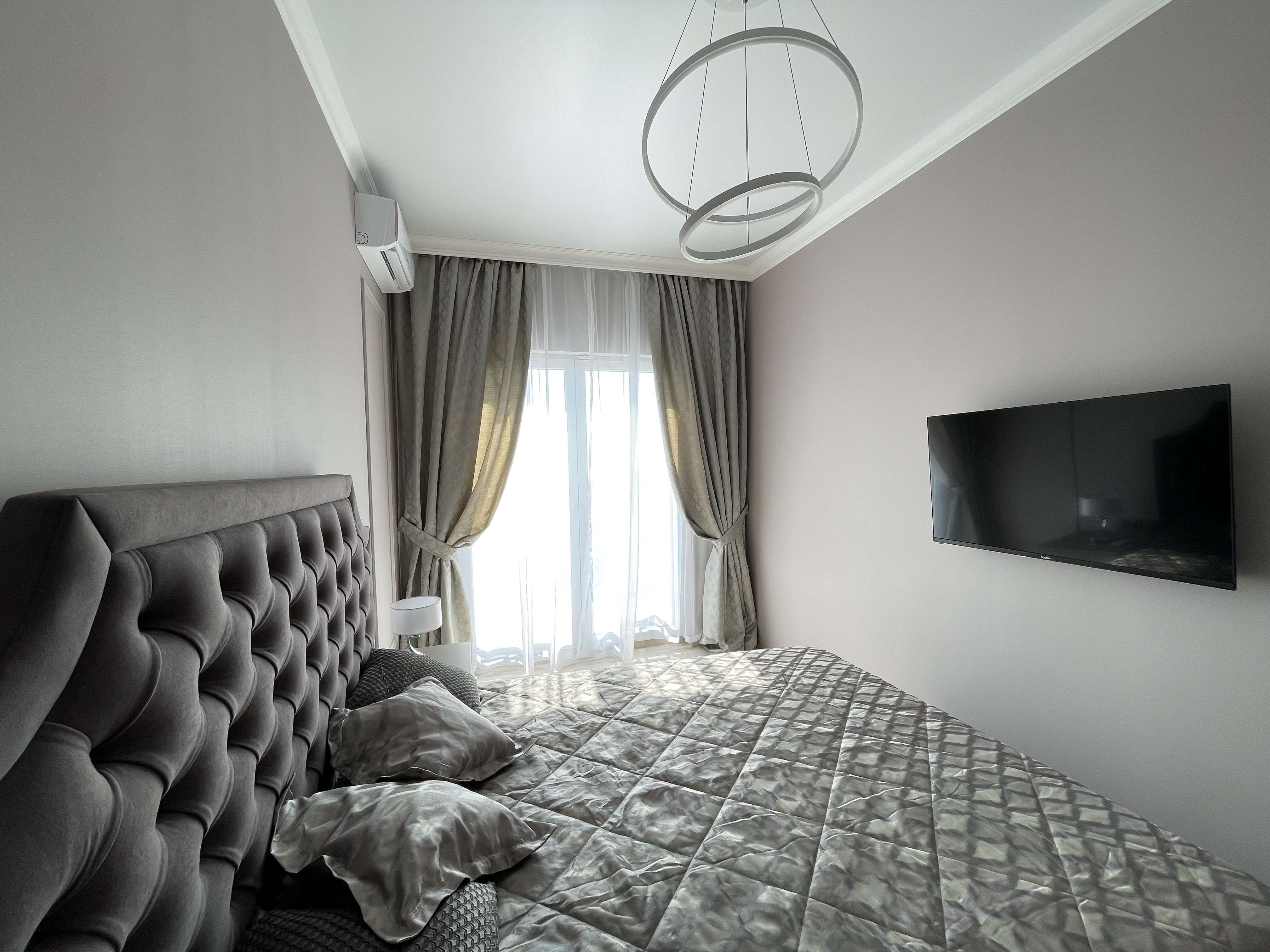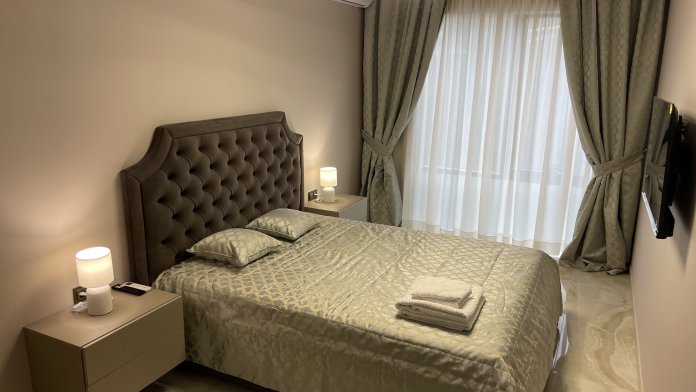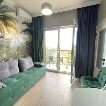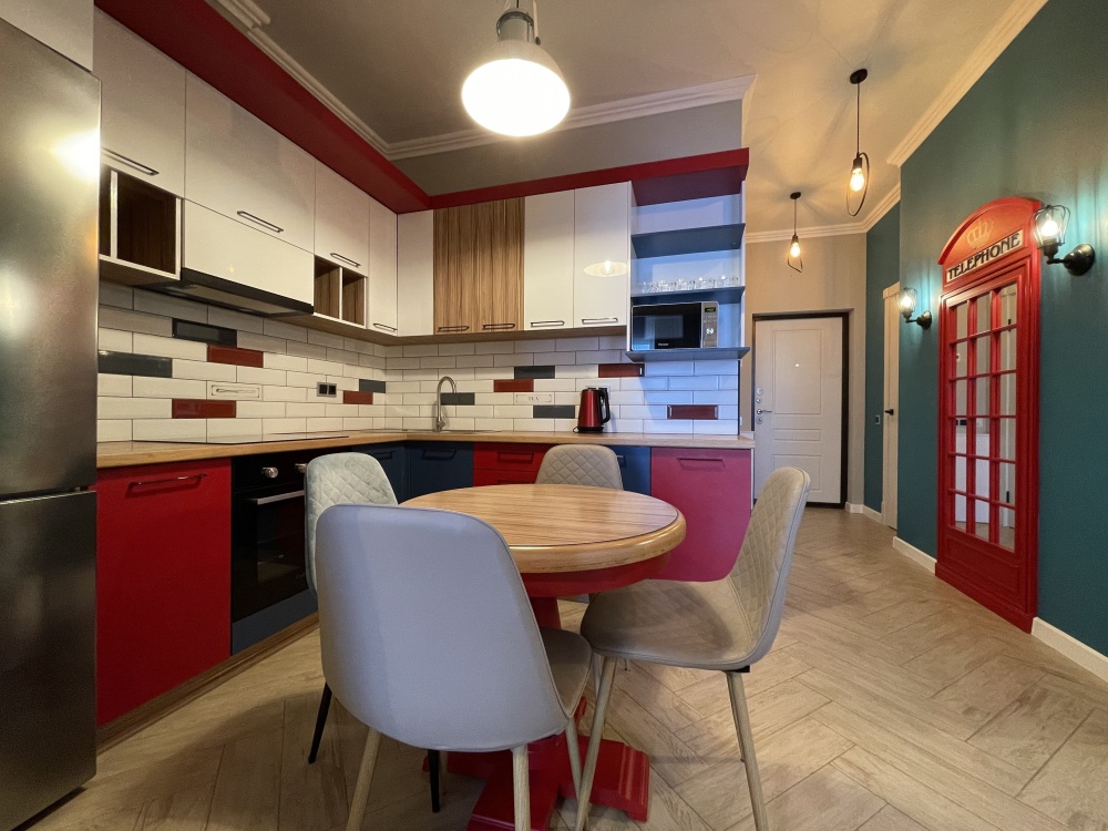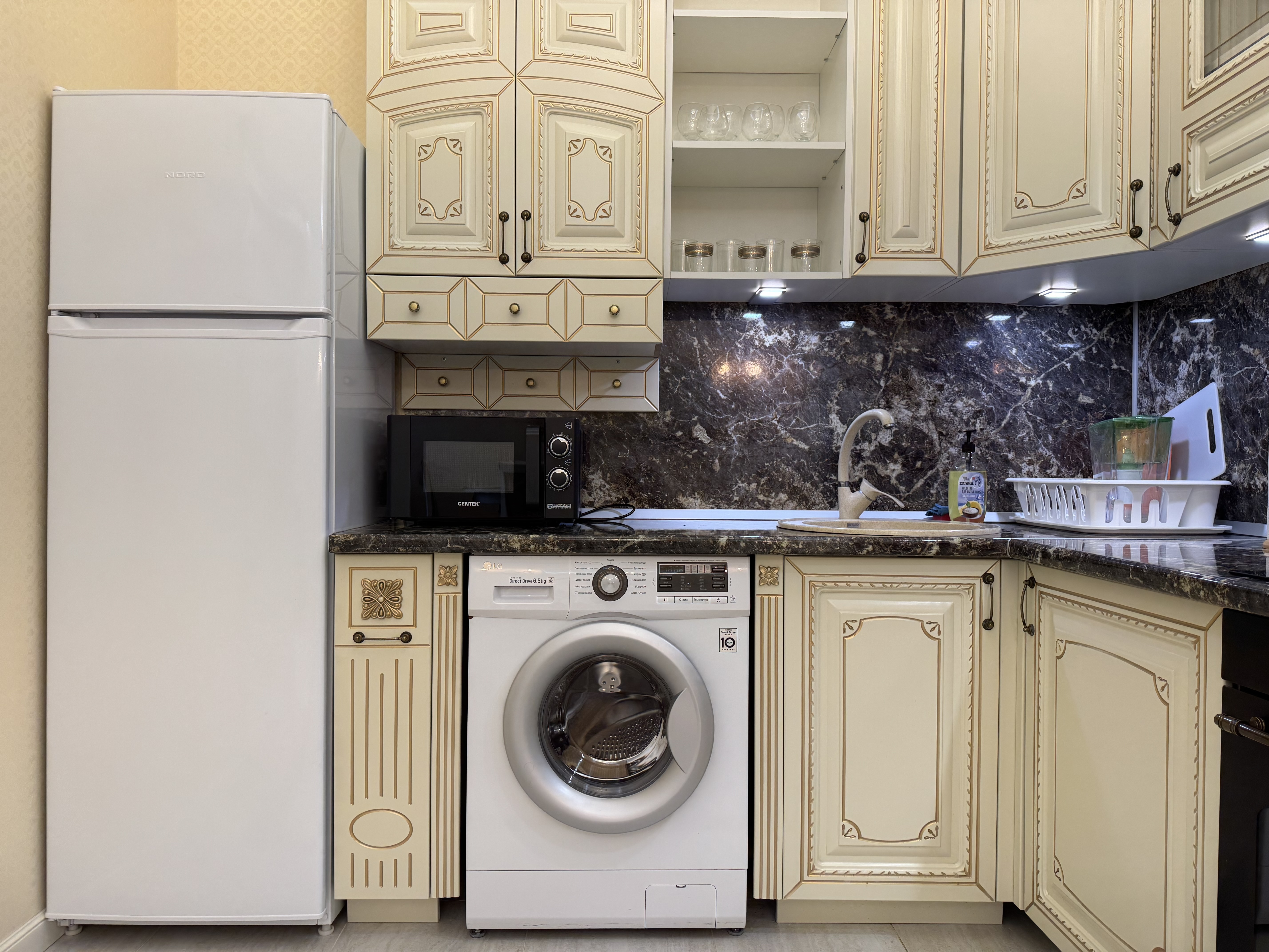 В квартире есть всё необходимое для проживания: холодильник, микроволновка, духовка, посудомоечная машина, кондиционер, стиральная машина, Wi-Fi и телевидение.