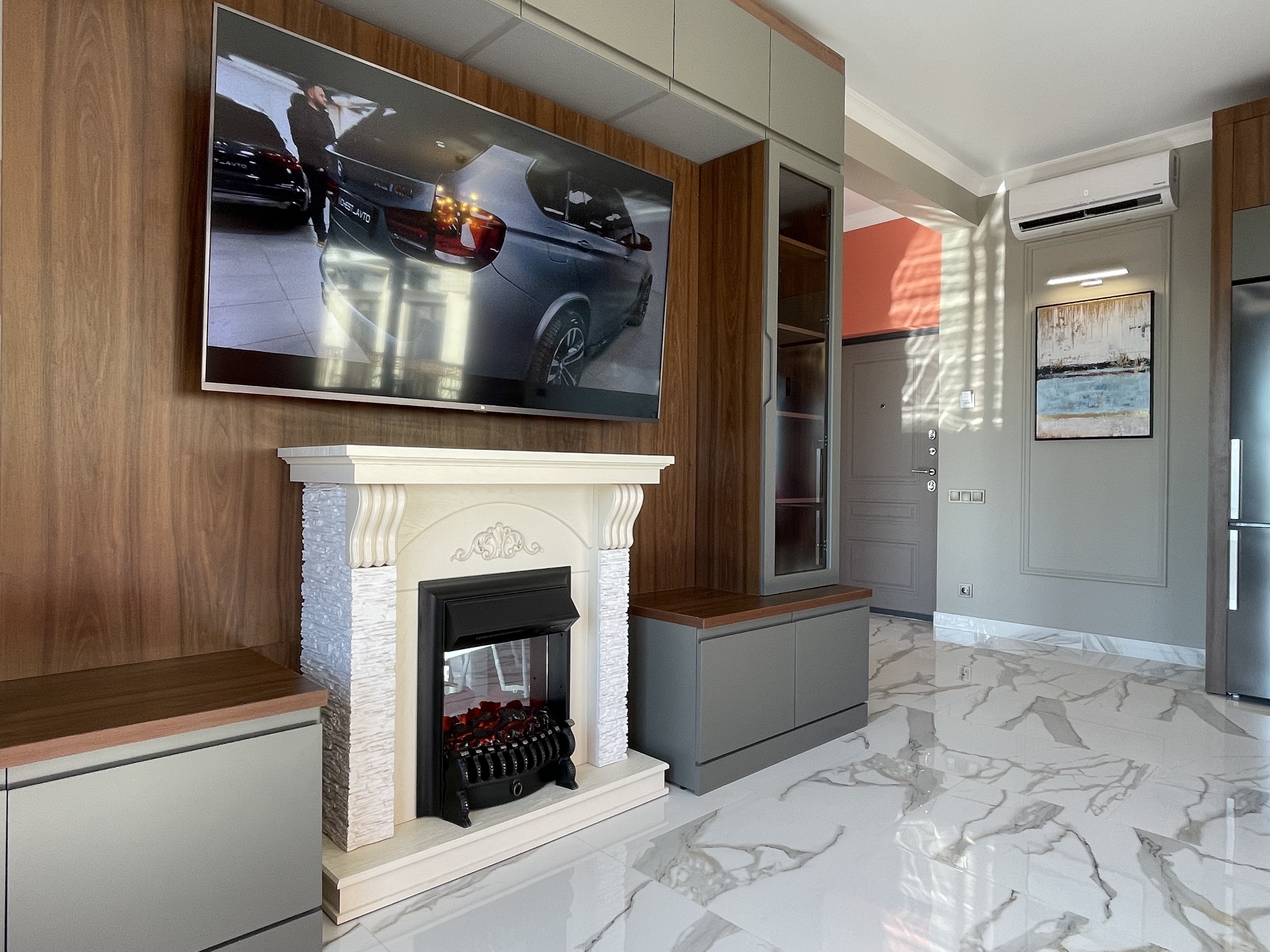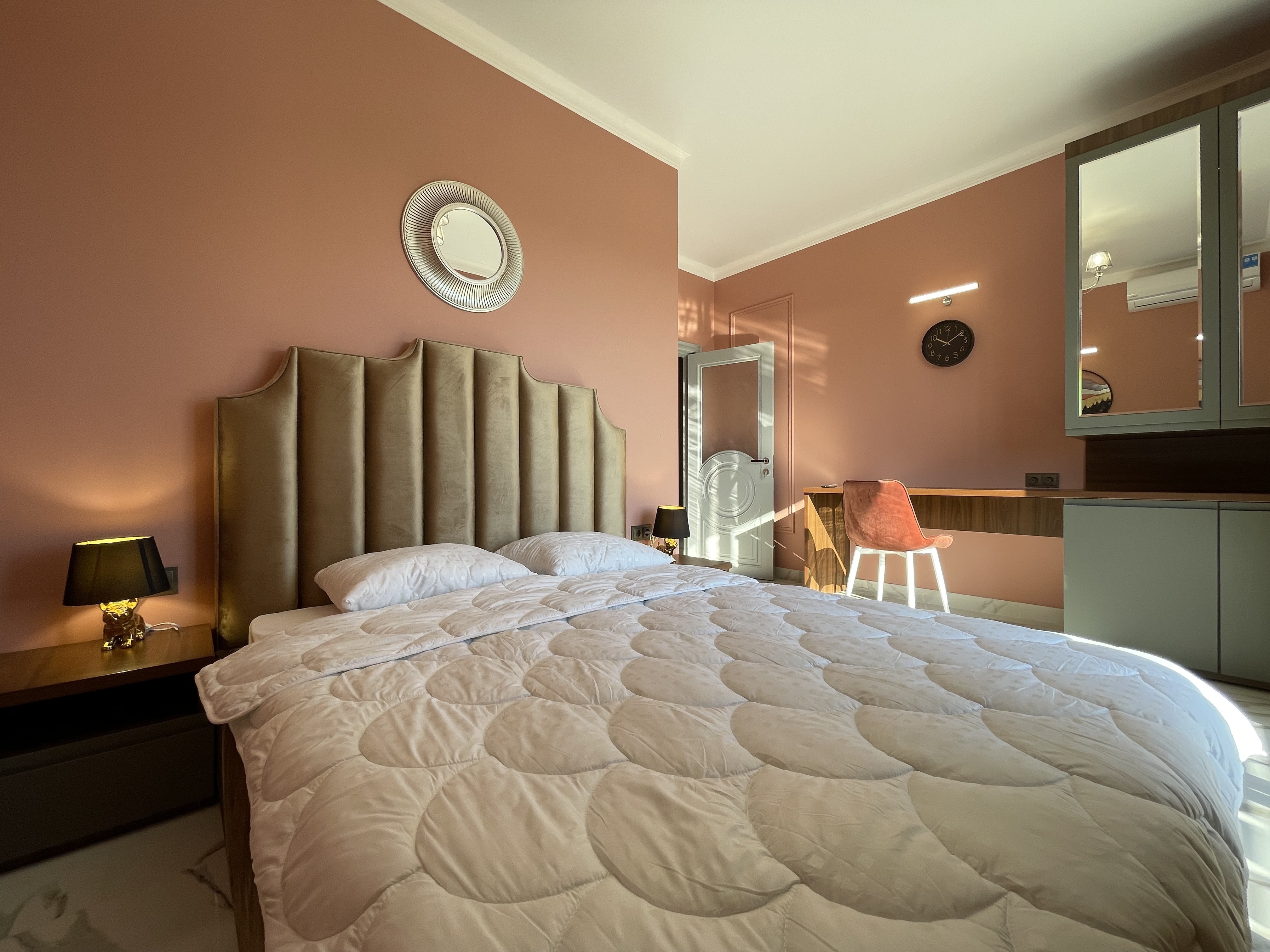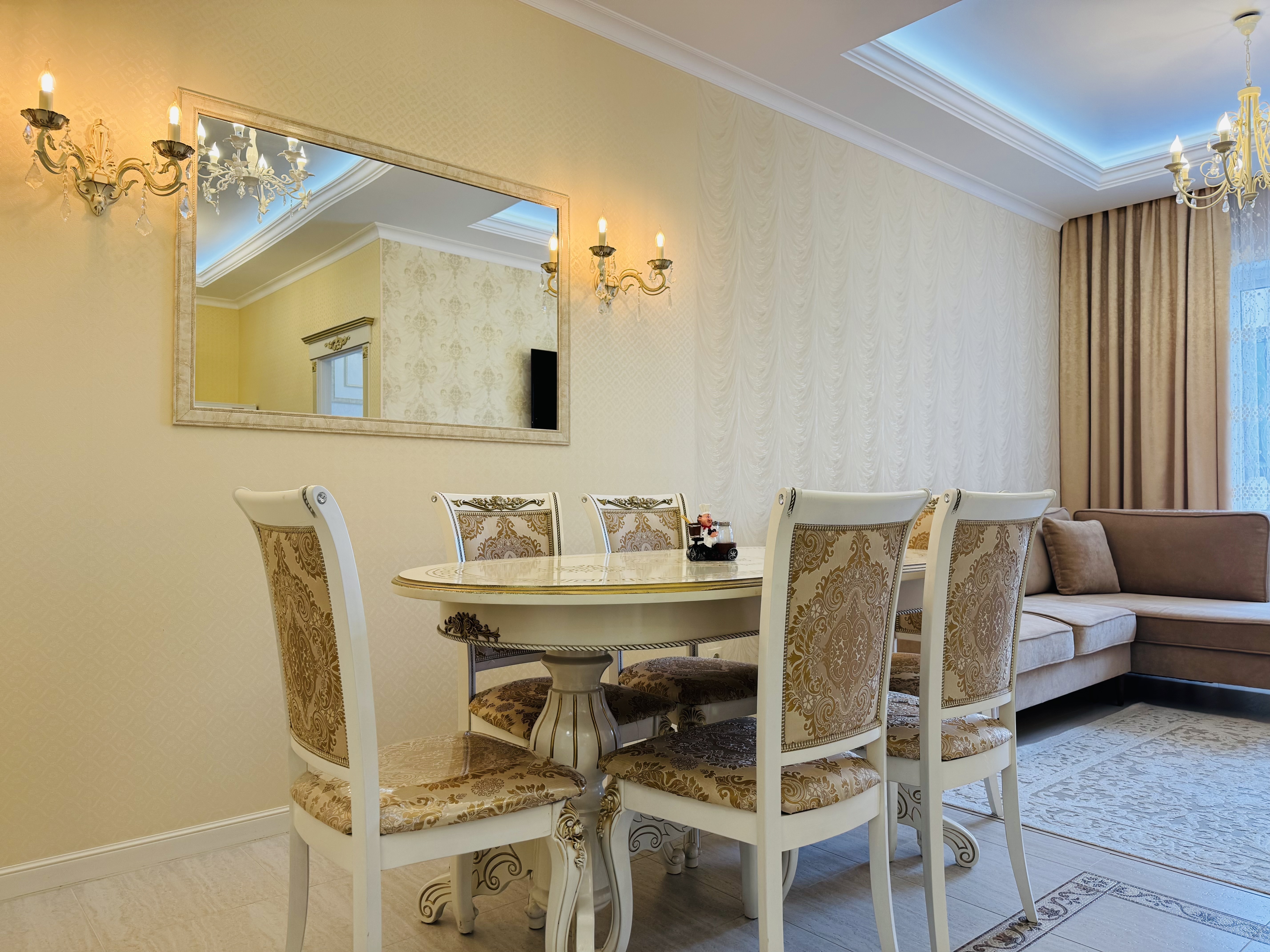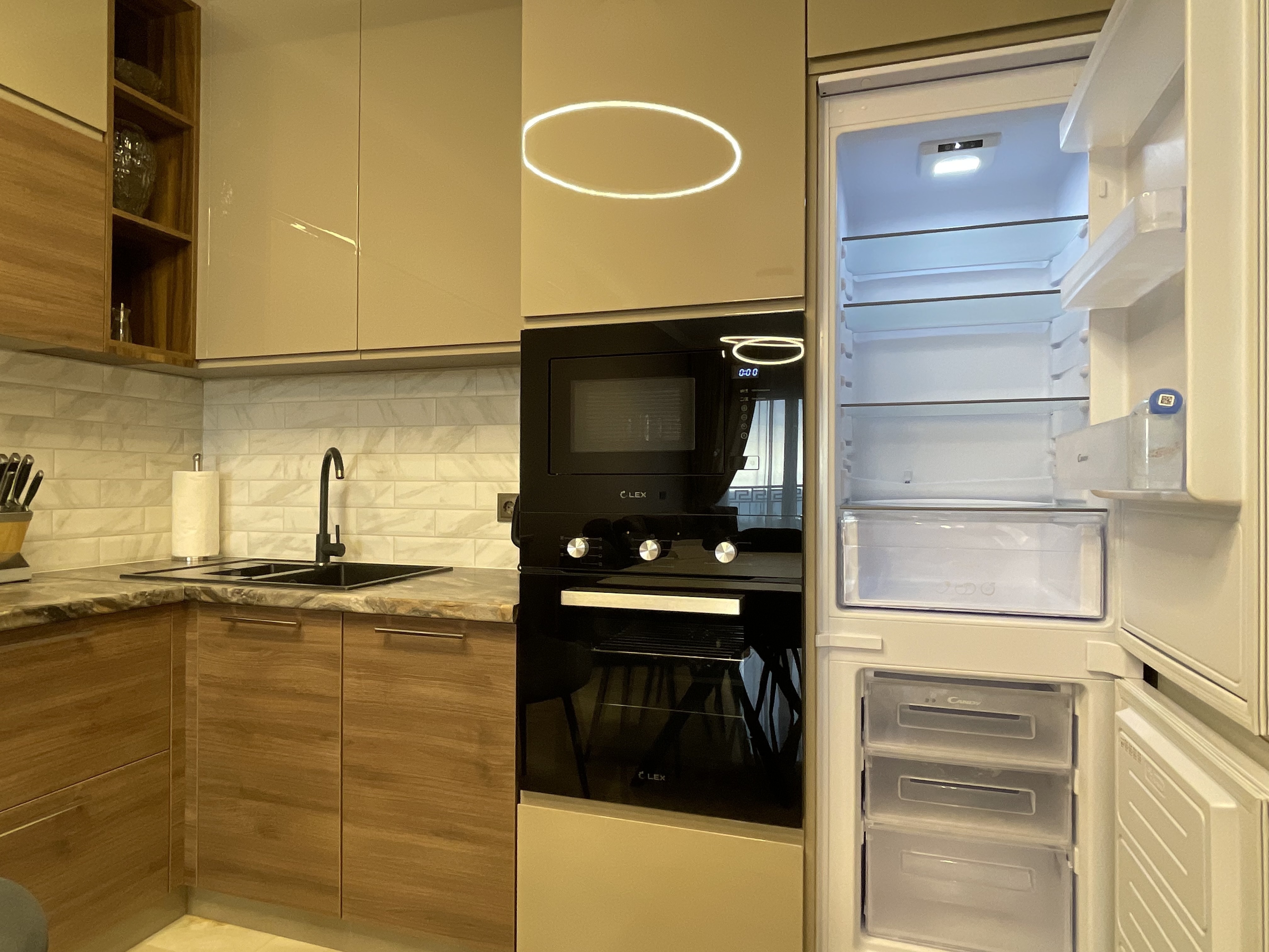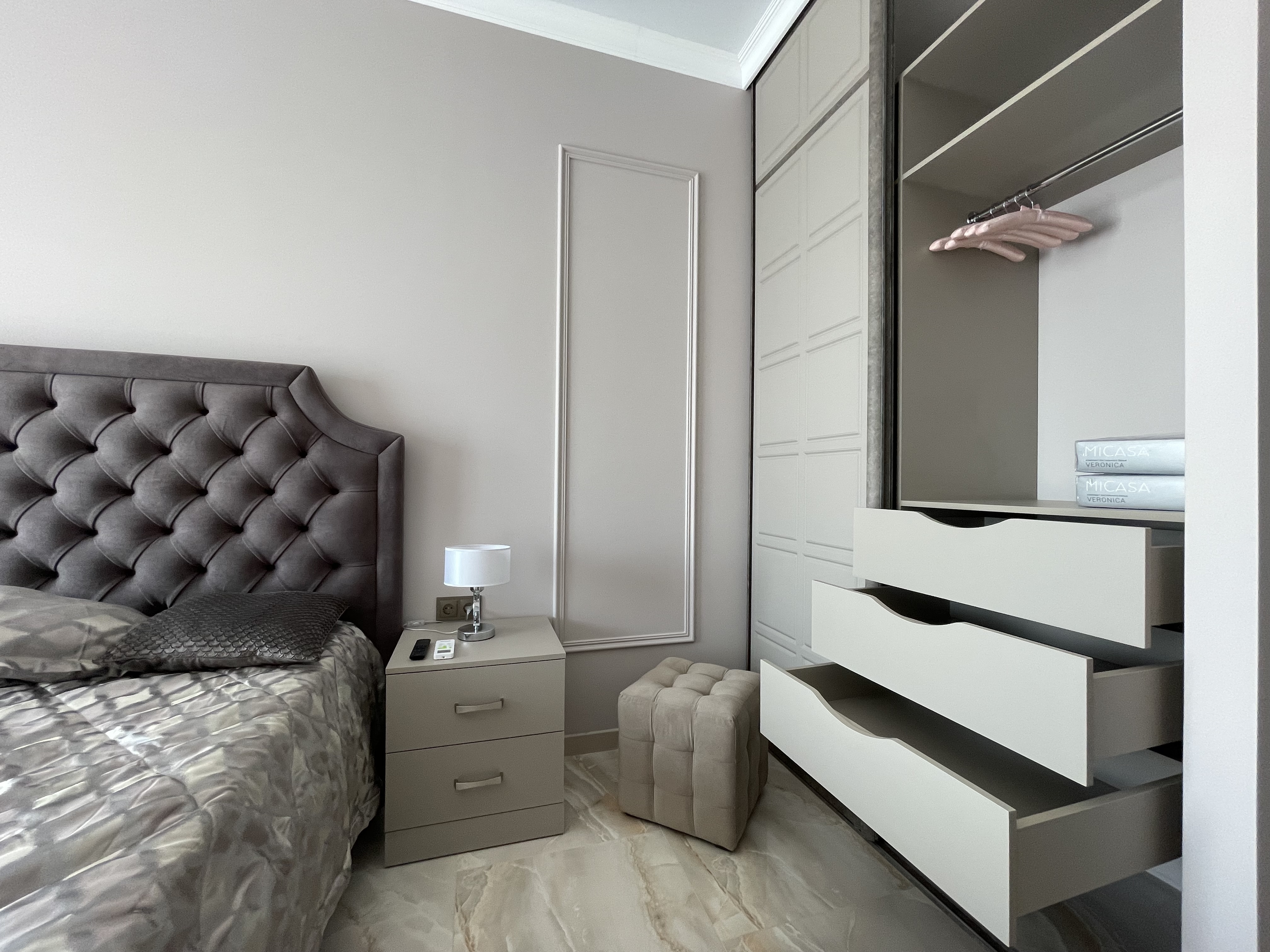 В квартире есть всё необходимое для проживания: холодильник, микроволновка, духовка, посудомоечная машина, кондиционер, стиральная машина, Wi-Fi и телевидение.