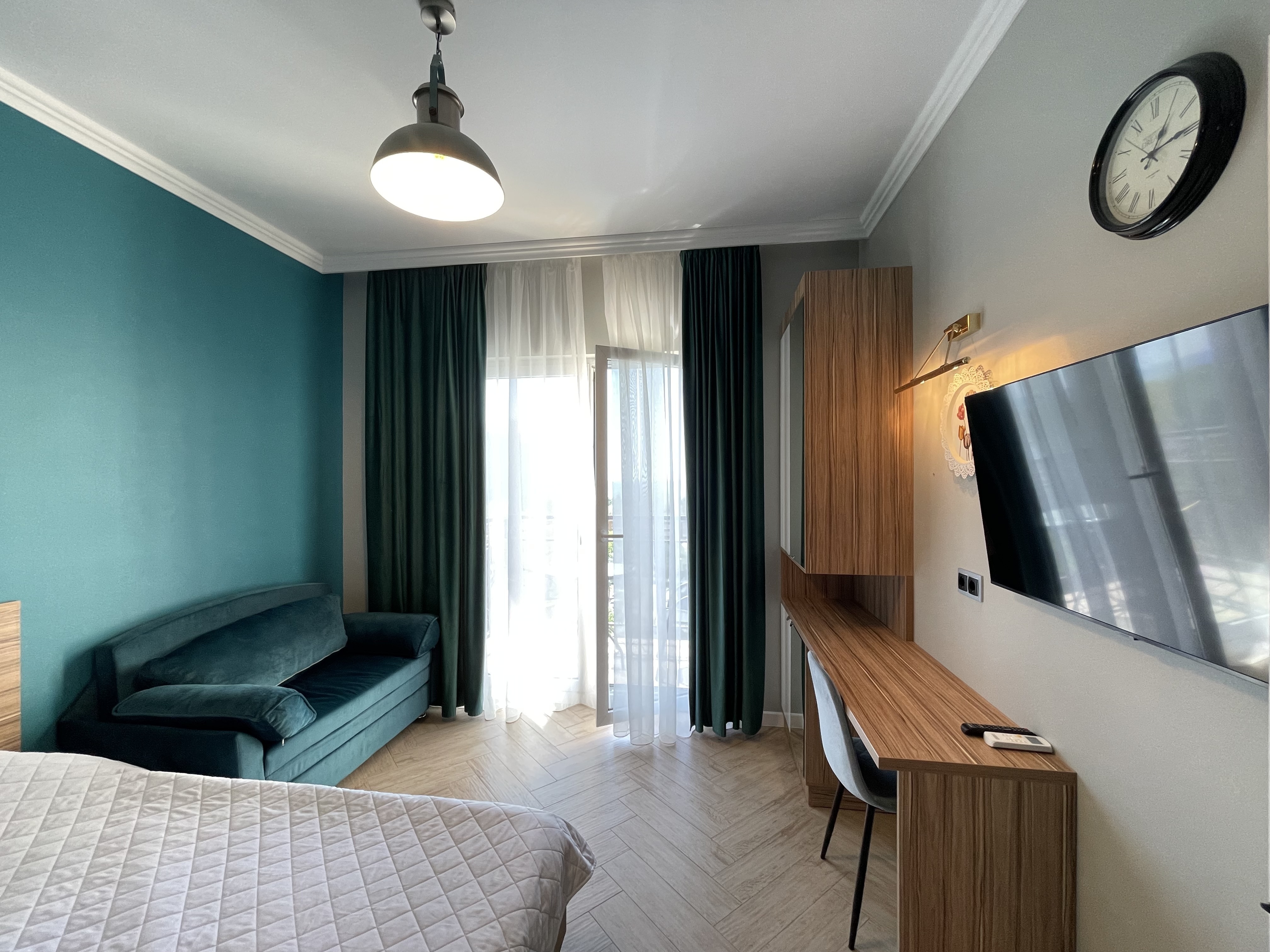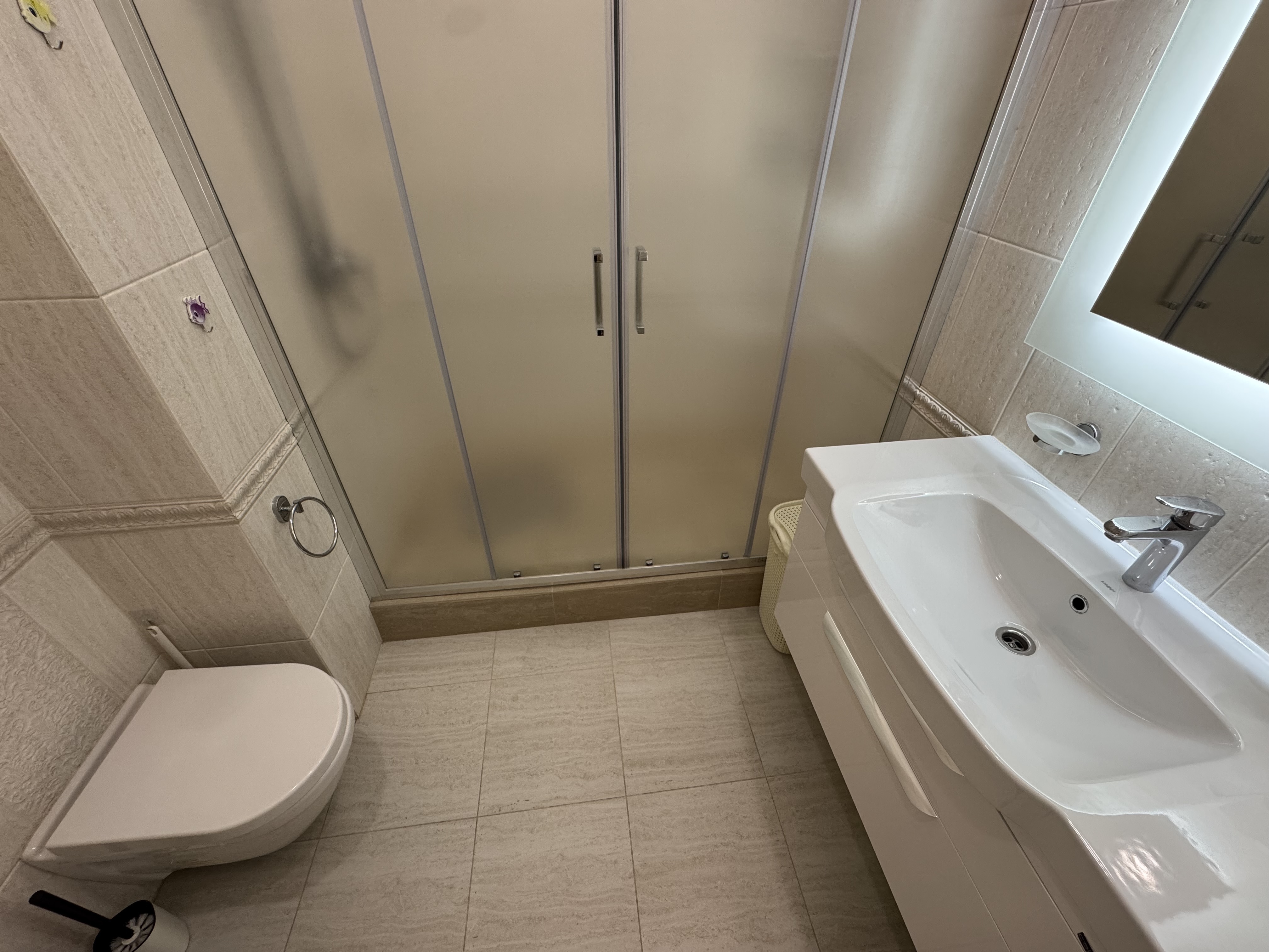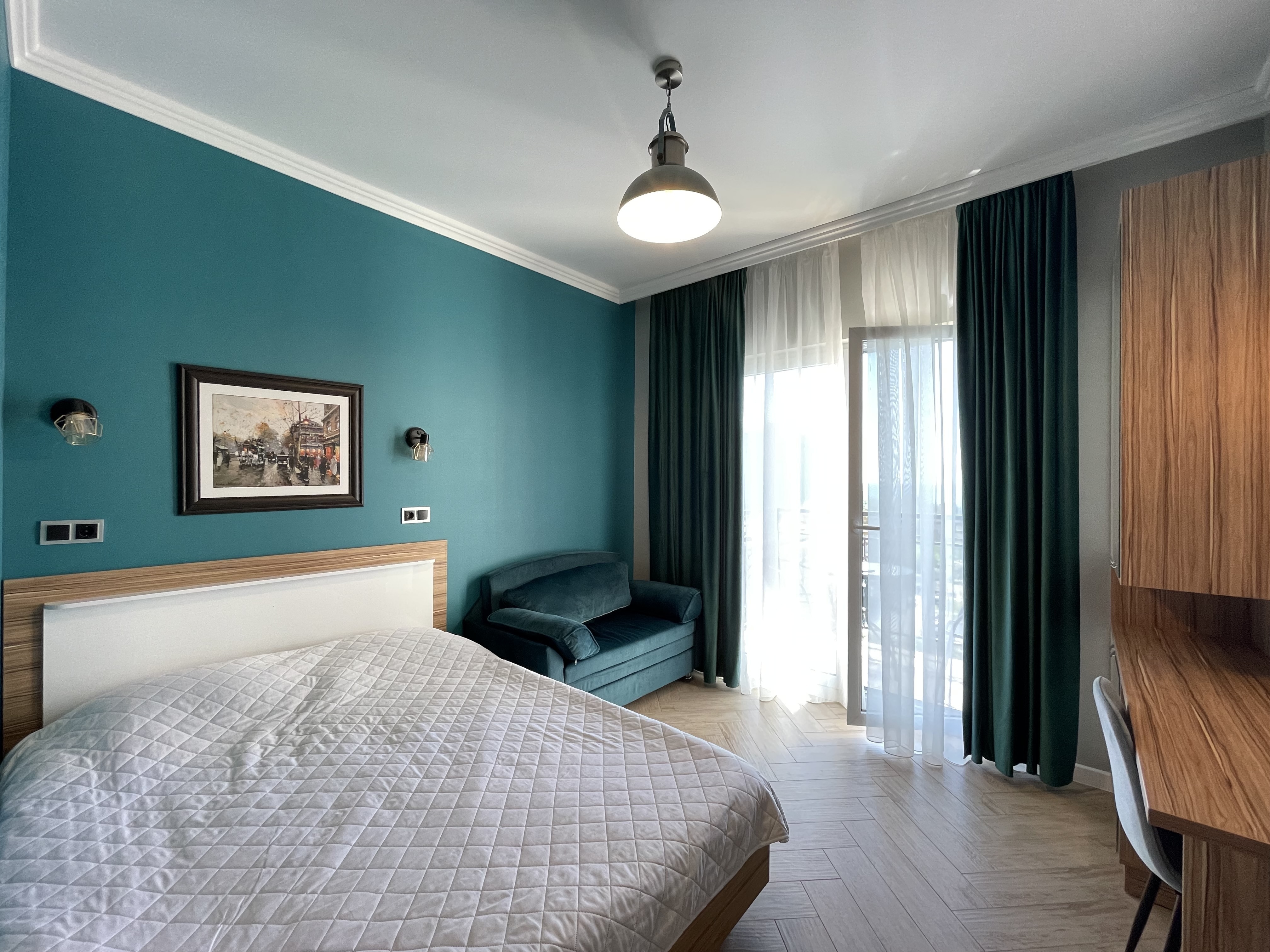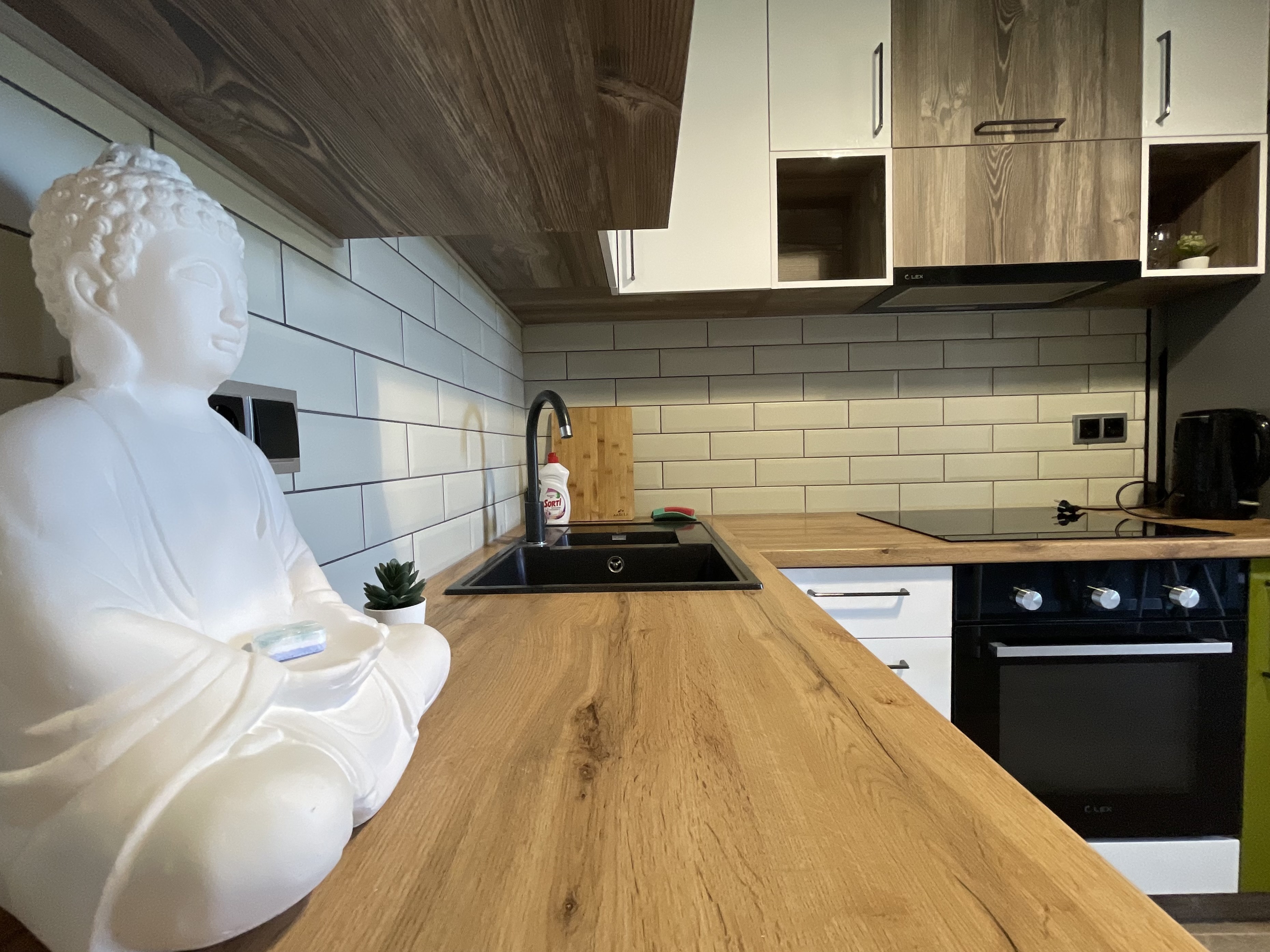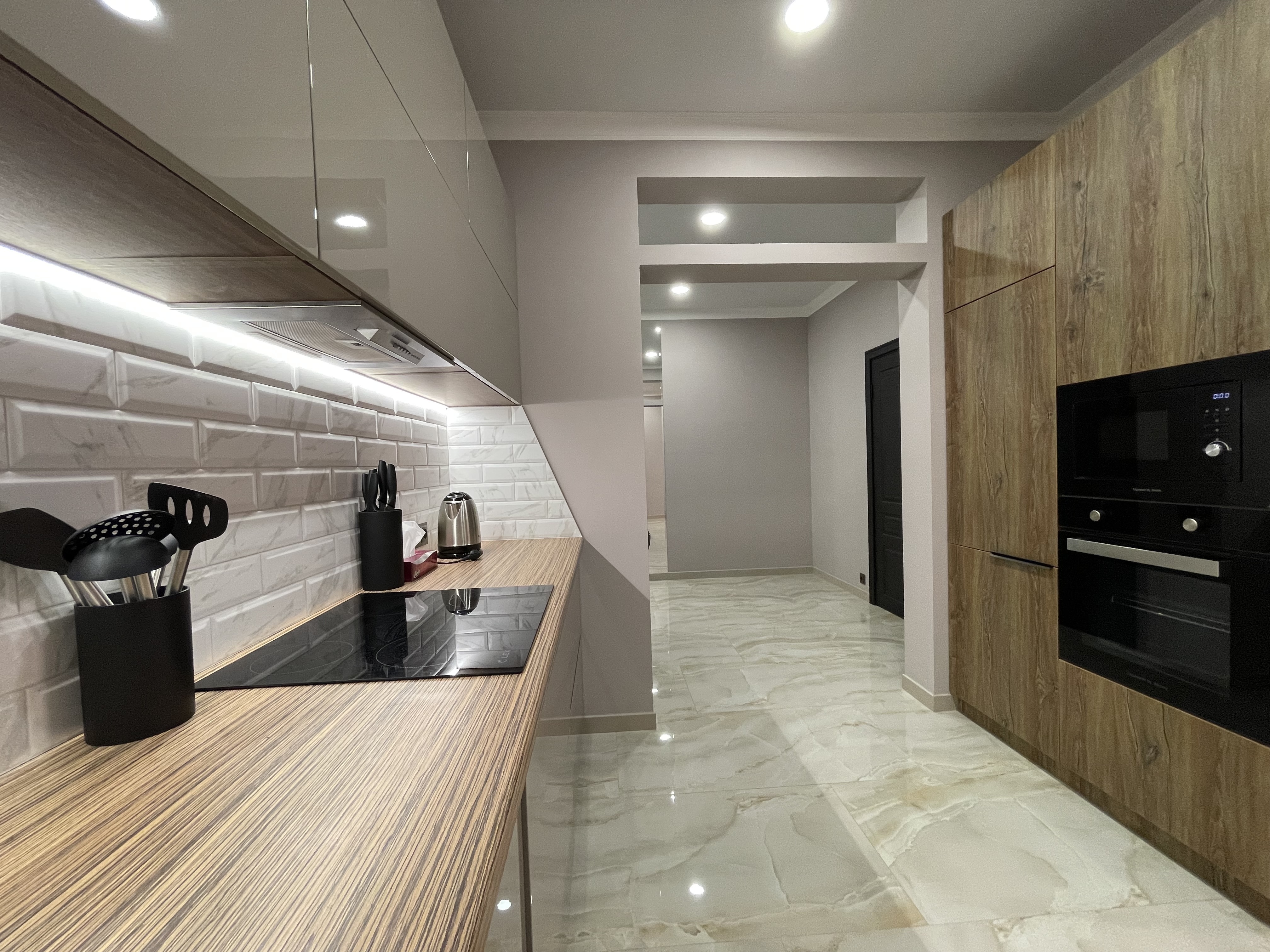 В квартире есть всё необходимое для проживания: холодильник, микроволновка, духовка, посудомоечная машина, кондиционер, стиральная машина, Wi-Fi и телевидение.