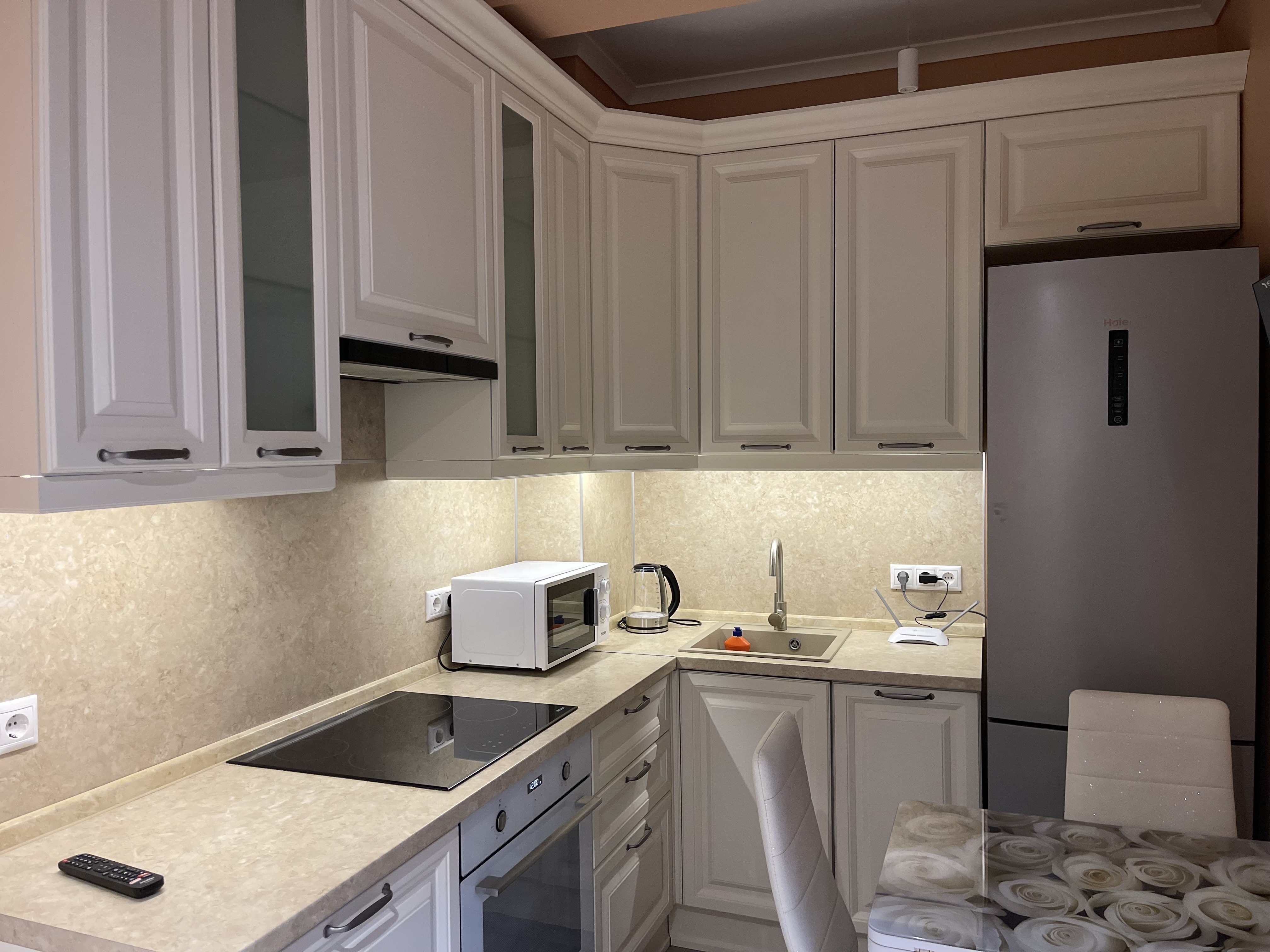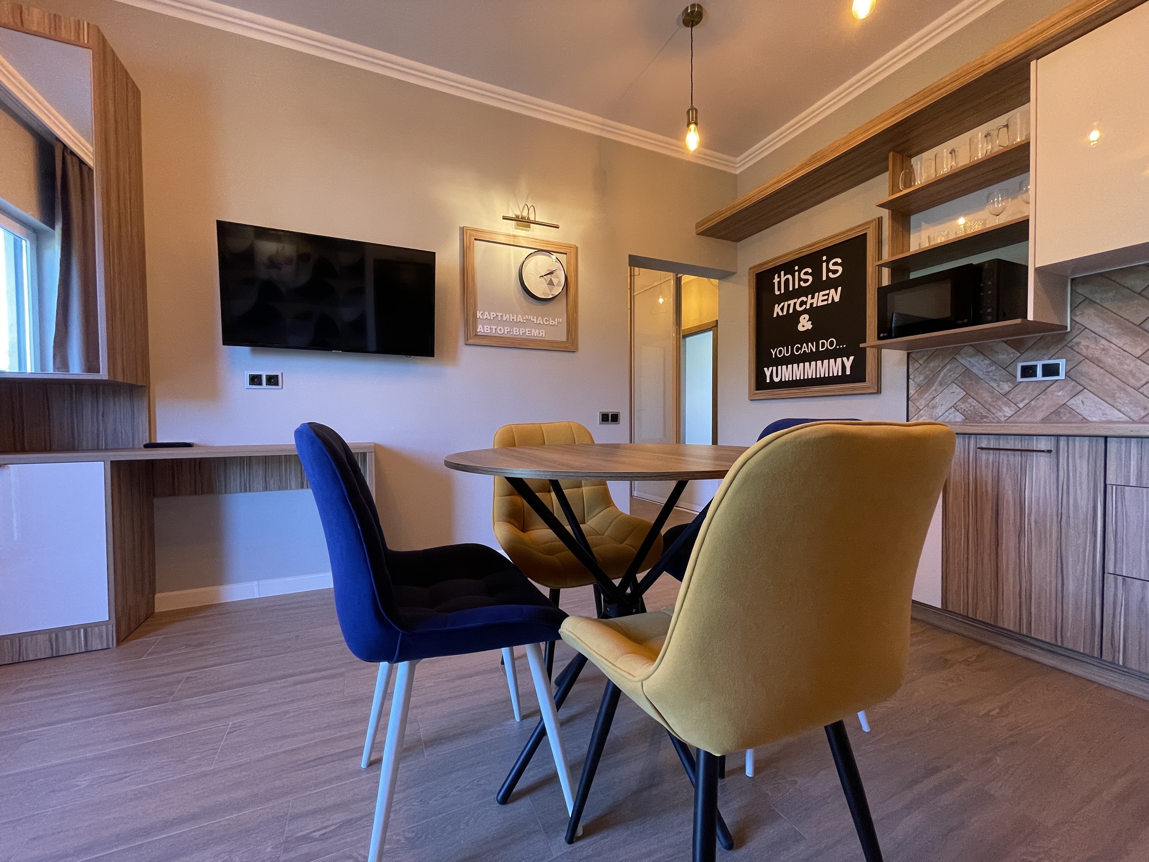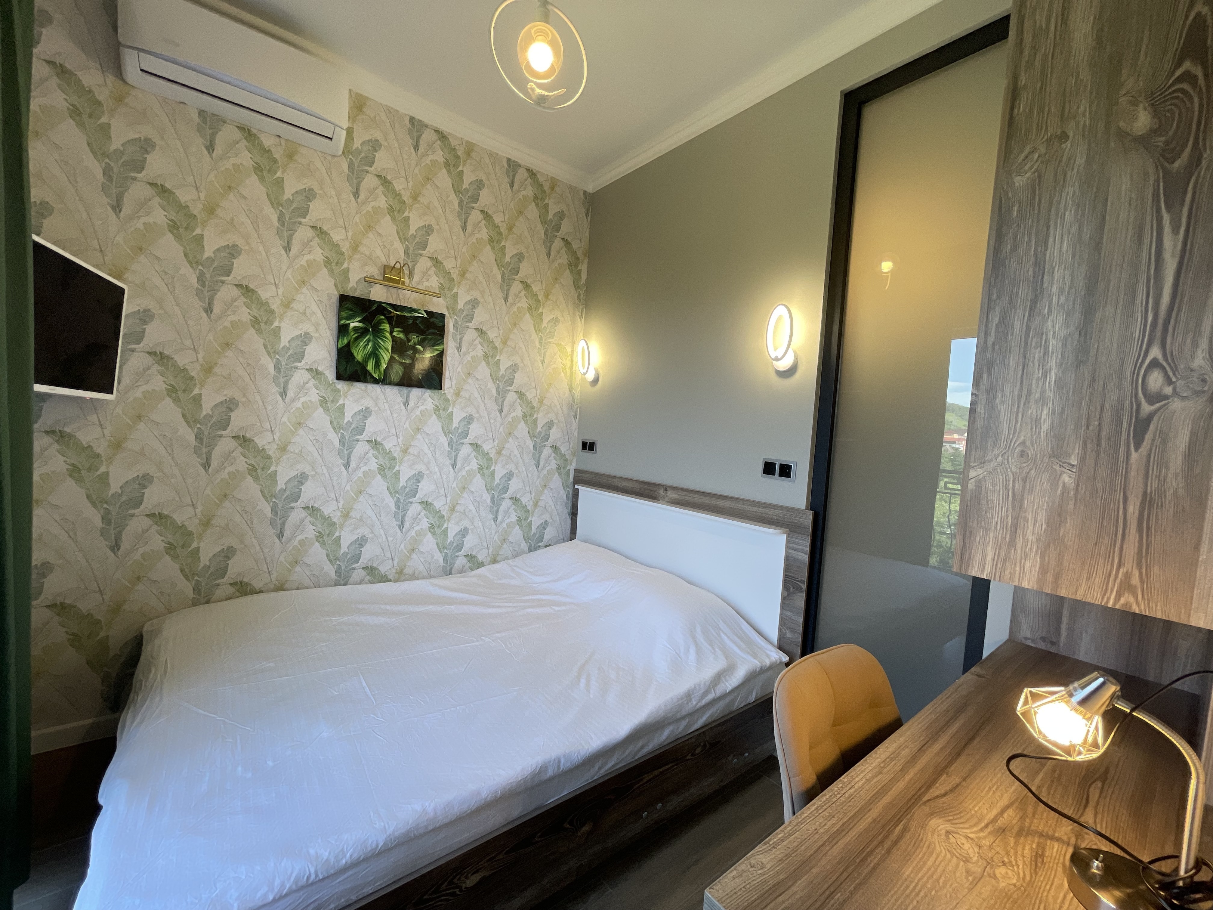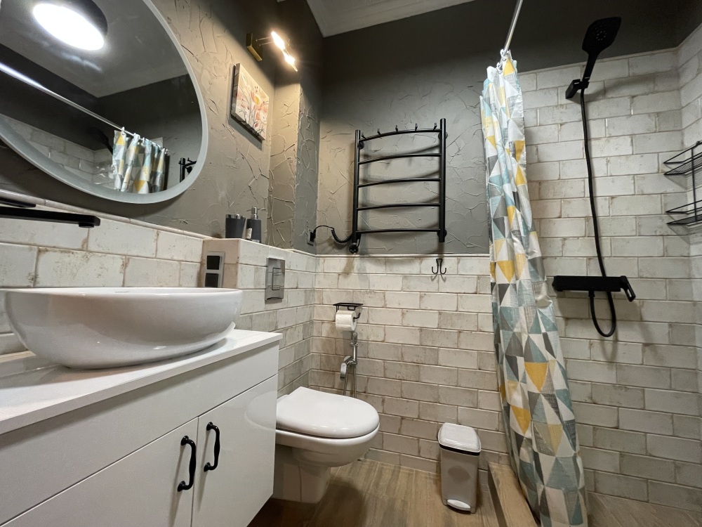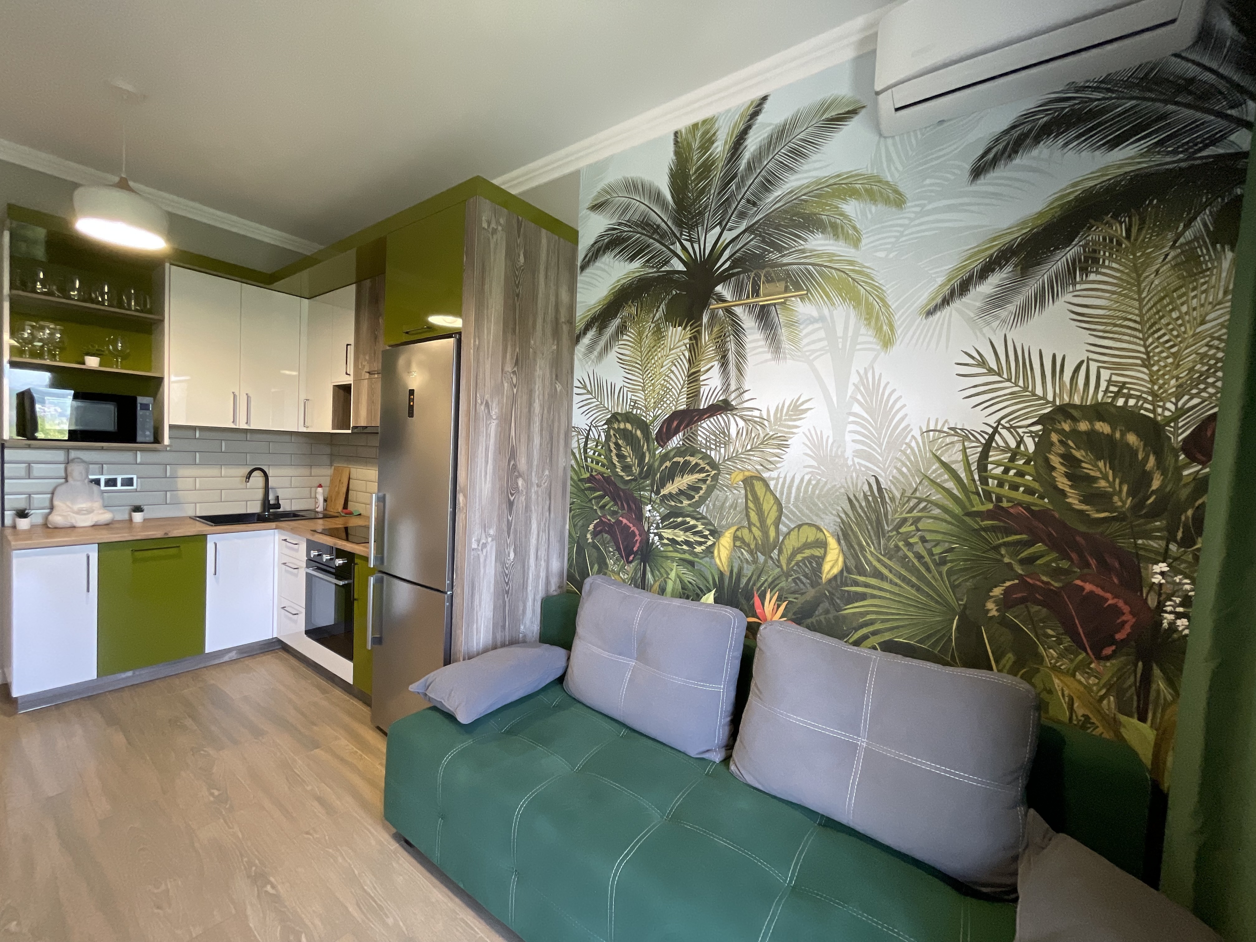В квартире есть всё необходимое для проживания: холодильник, микроволновка, кухонная плита, свч печь, кондиционер, стиральная машина, Wi-Fi и телевидение.